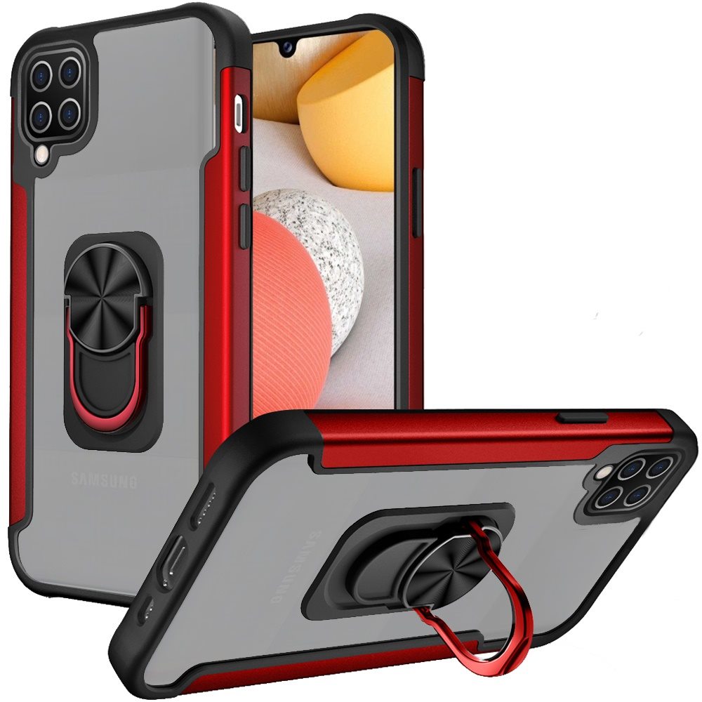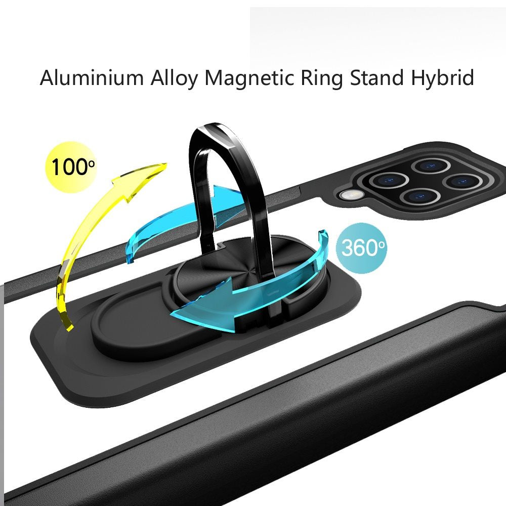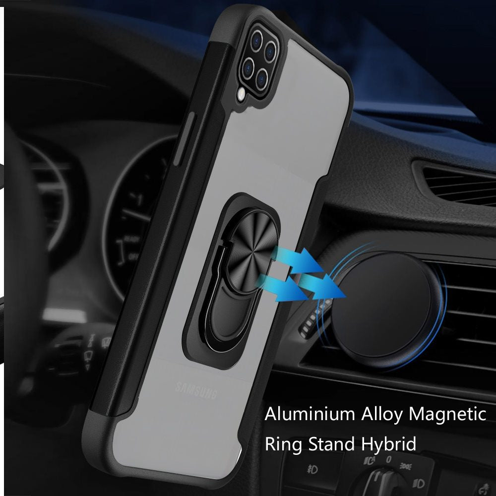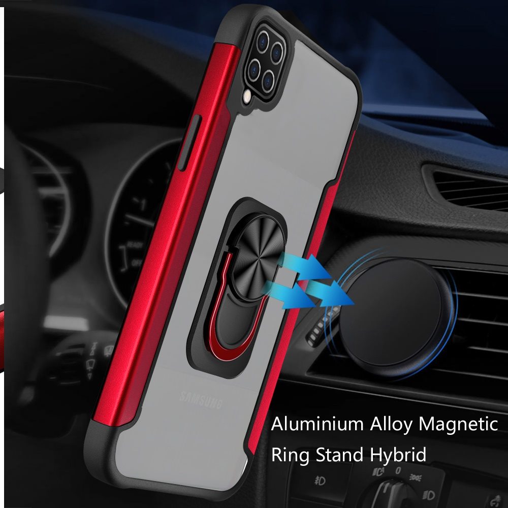 For Samsung A42 5G Aluminium Alloy Magnetic Ring Stand Hybrid Case Cover