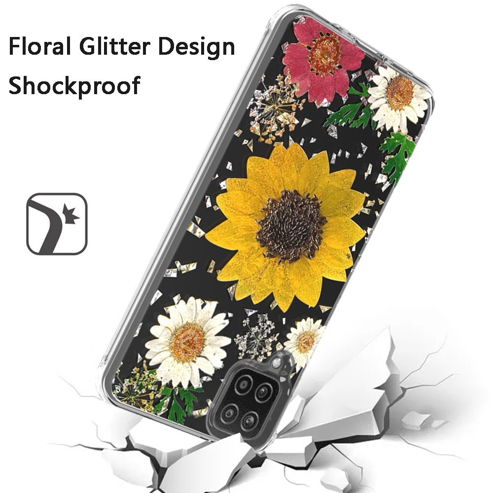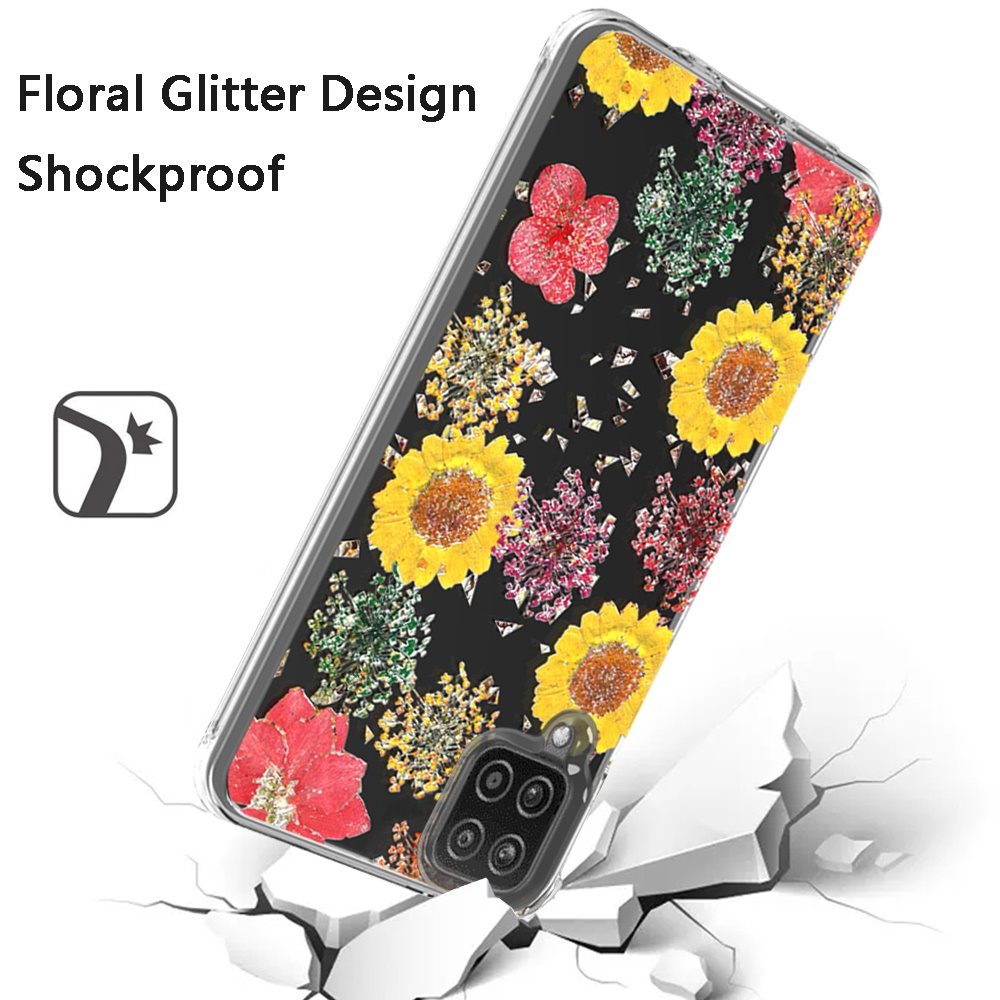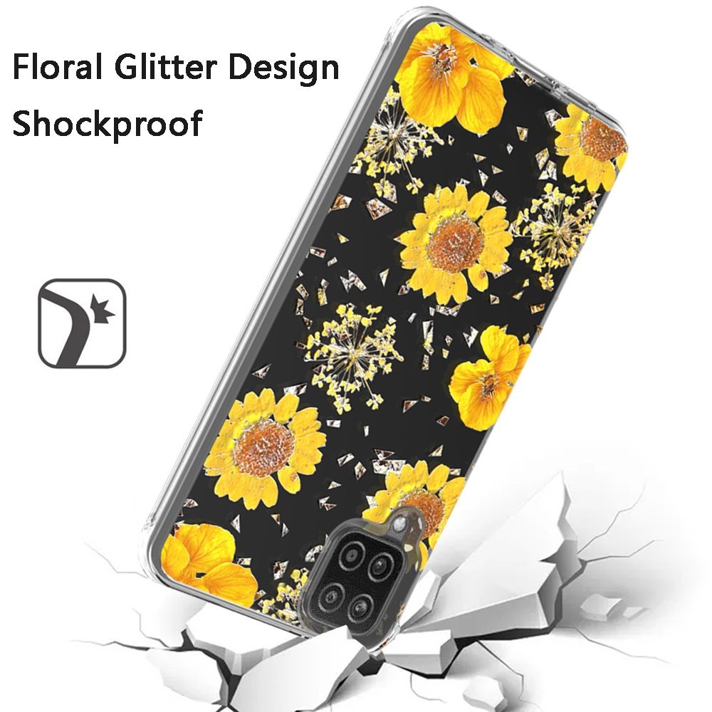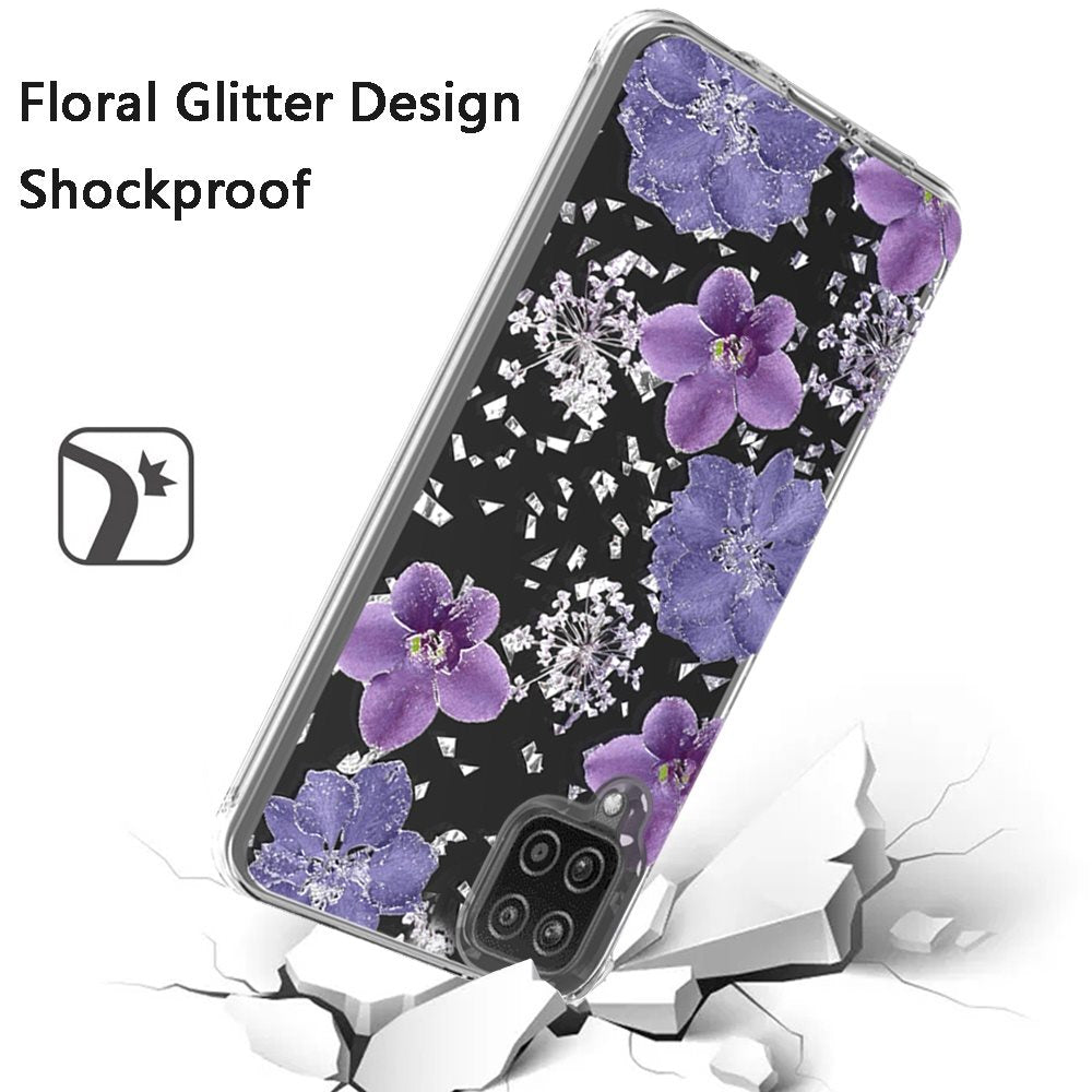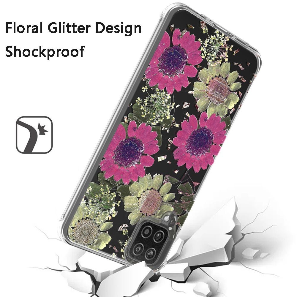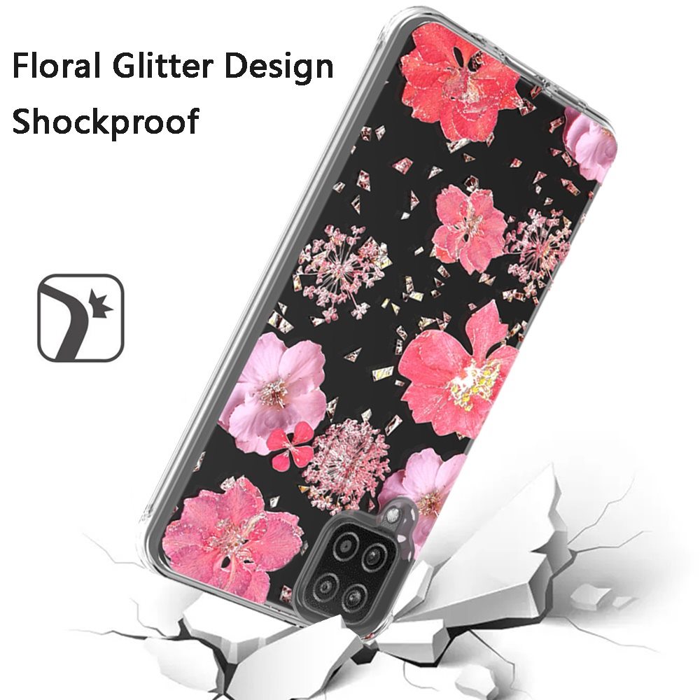 For Samsung A42 5G Floral Glitter Design Case Cover