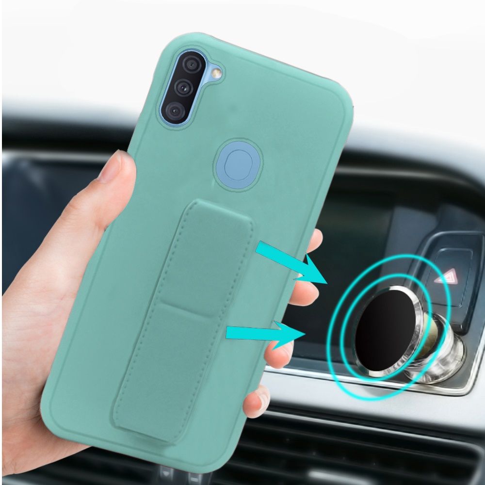 For Samsung Galaxy A11 Foldable Magnetic Kickstand Vegan Case Cover