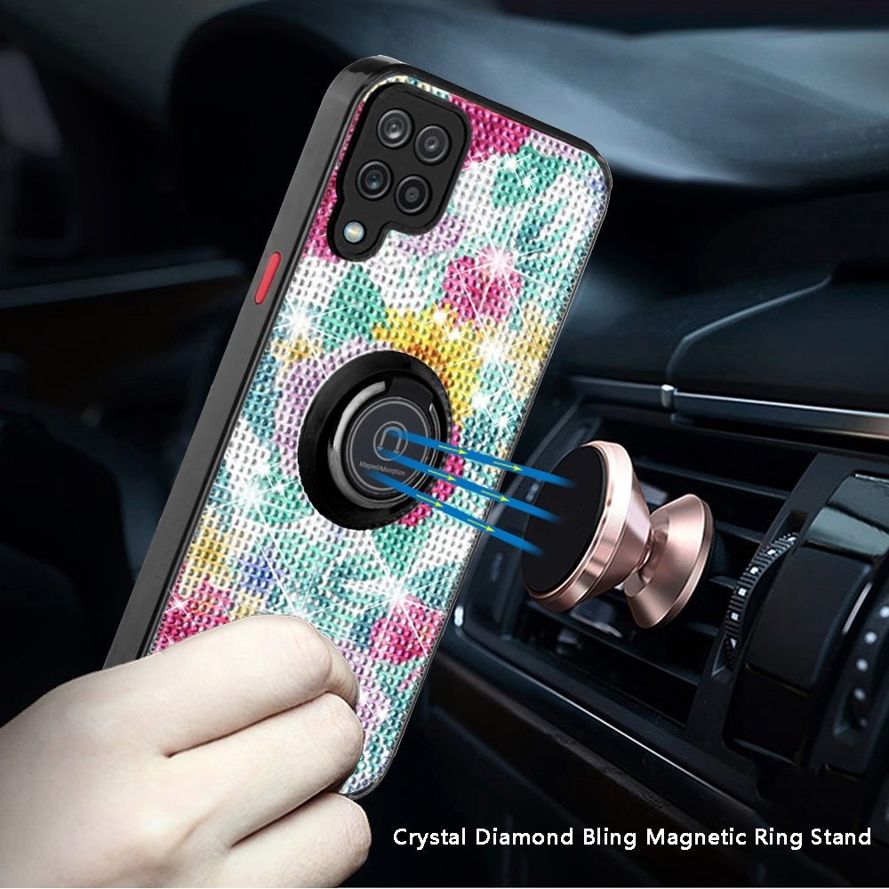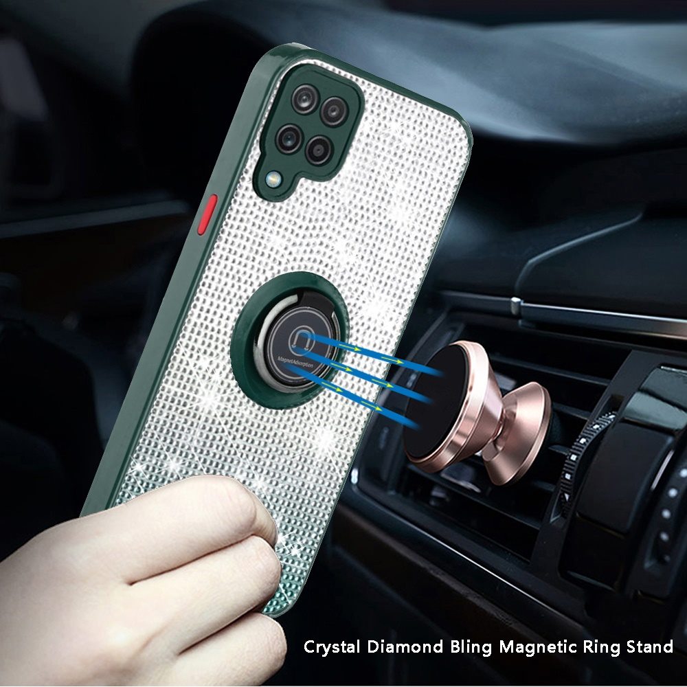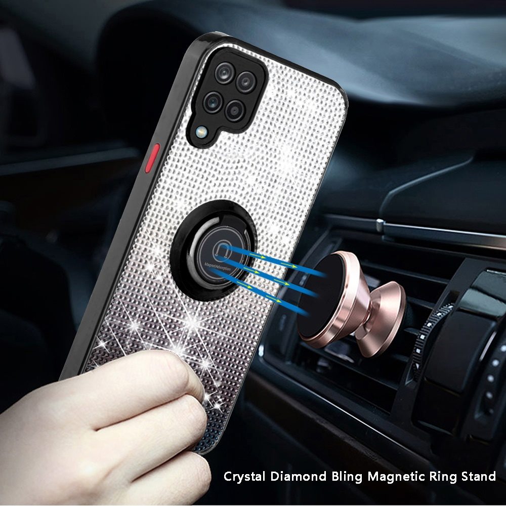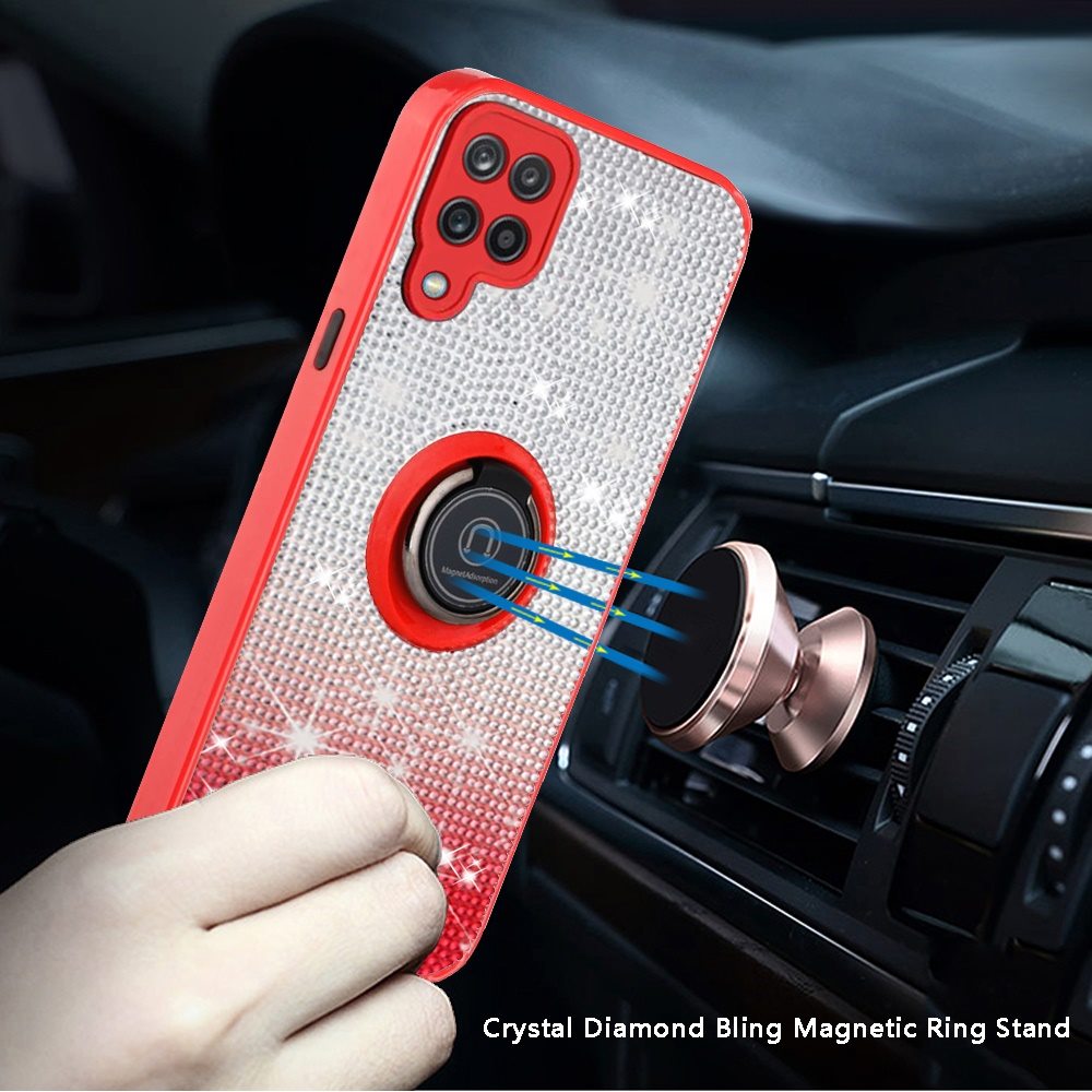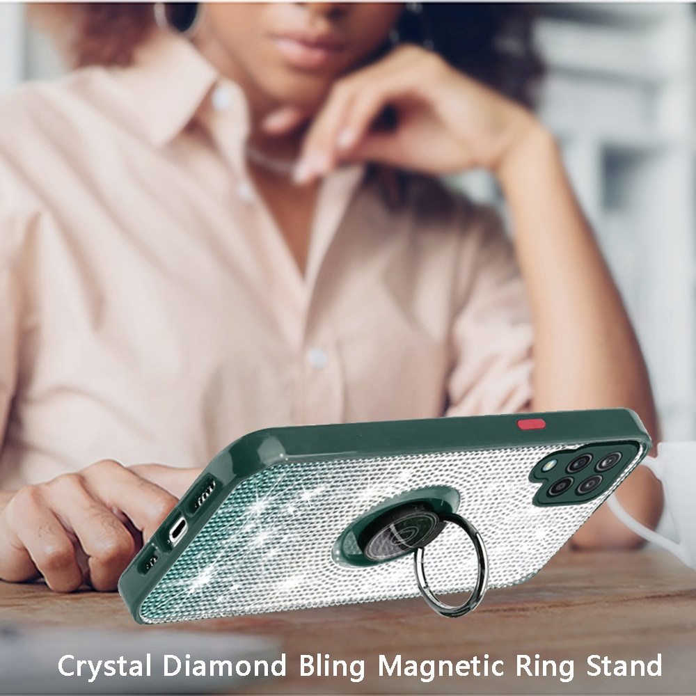 For Samsung Galaxy A12 5G Crystal Diamond Bling Magnetic Ring Stand Case Cover