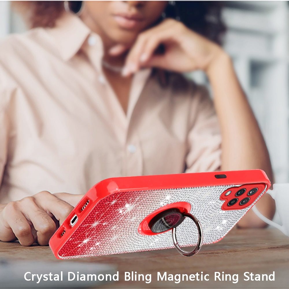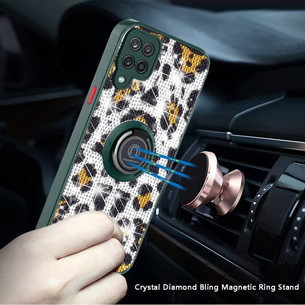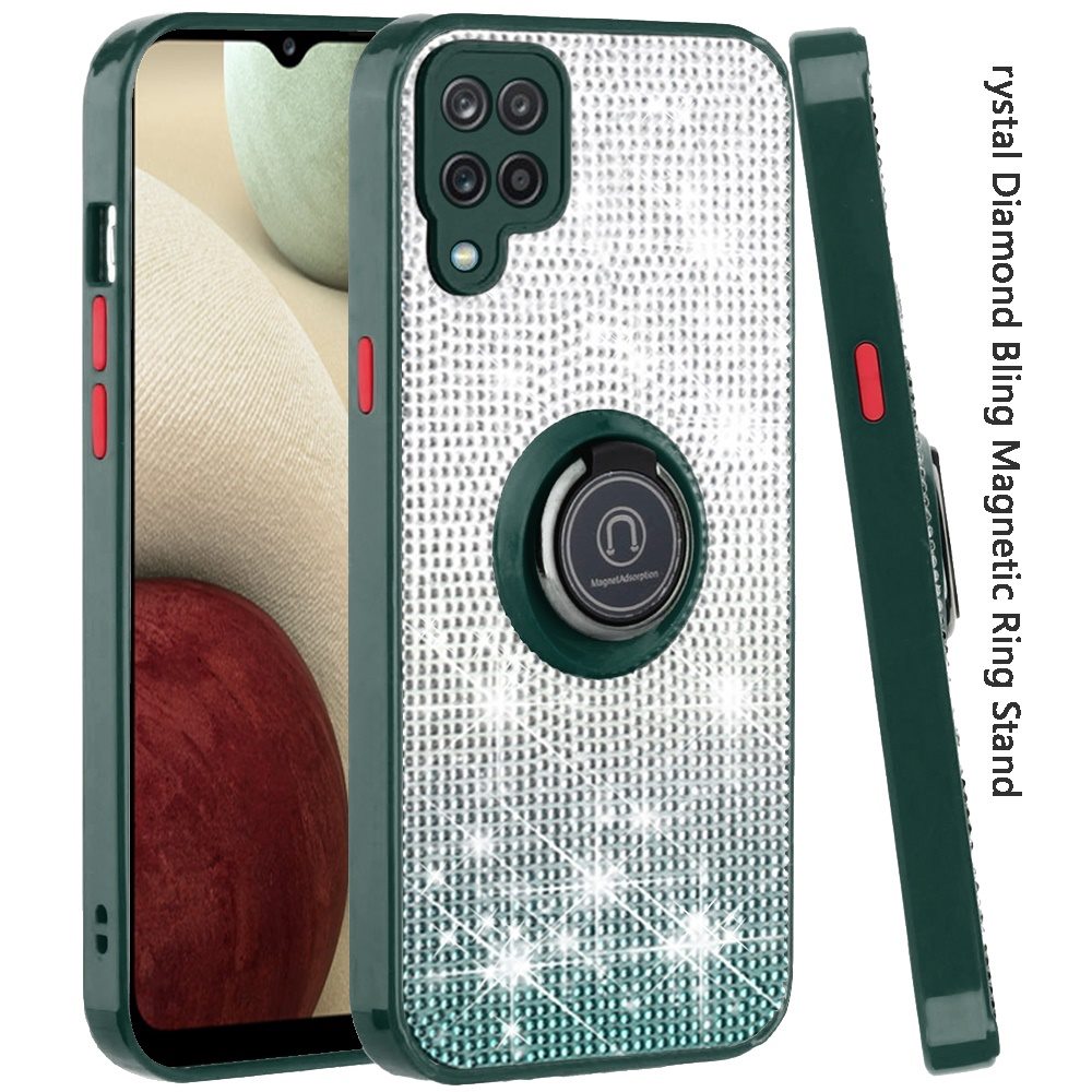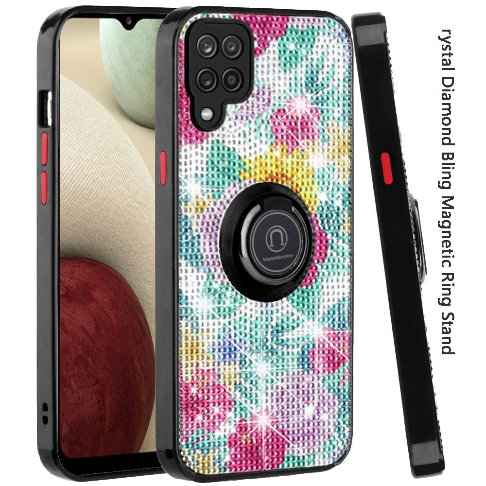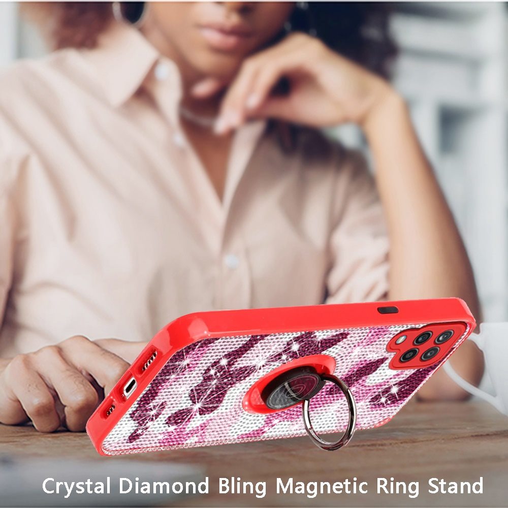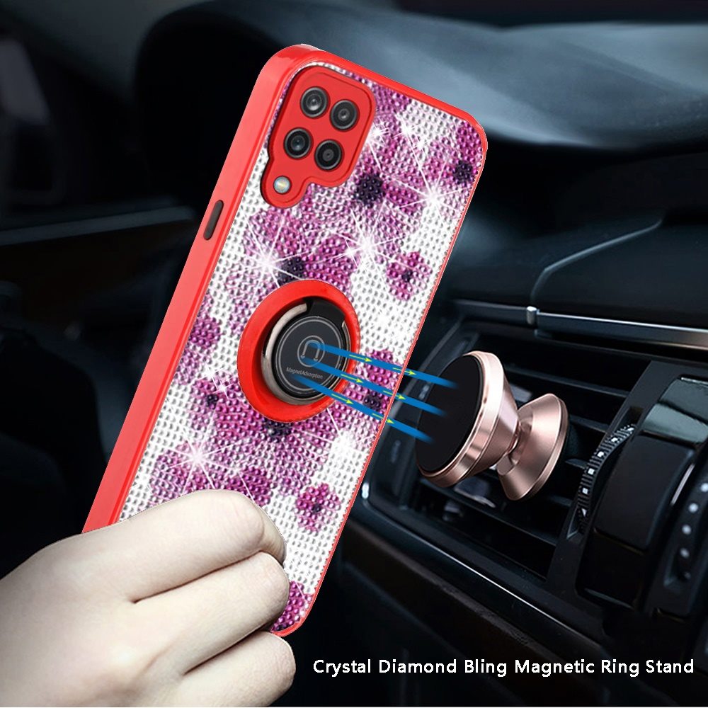 For Samsung Galaxy A12 5G Crystal Diamond Bling Magnetic Ring Stand Case Cover