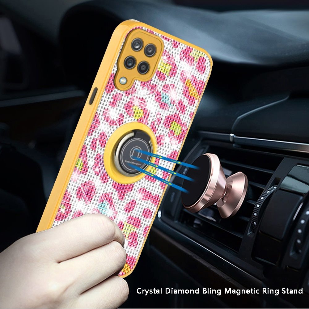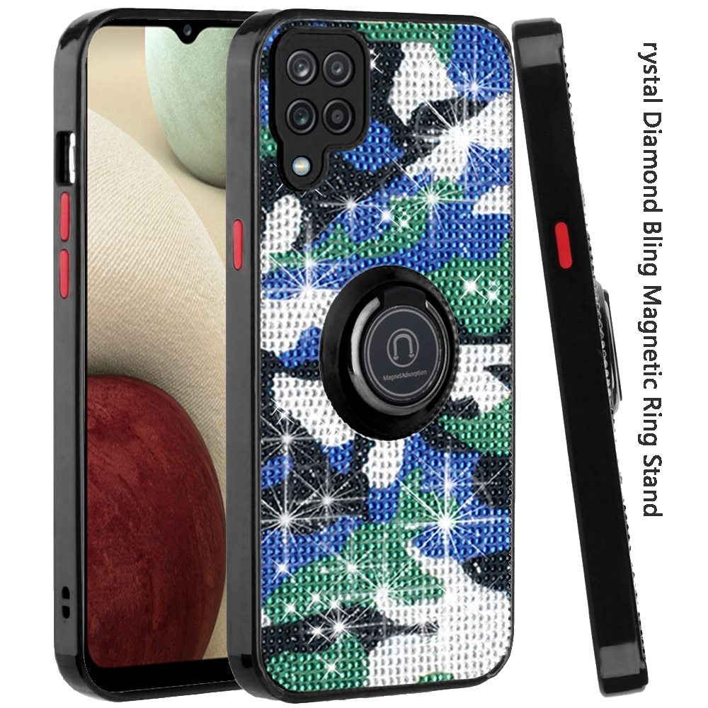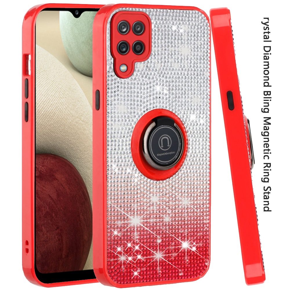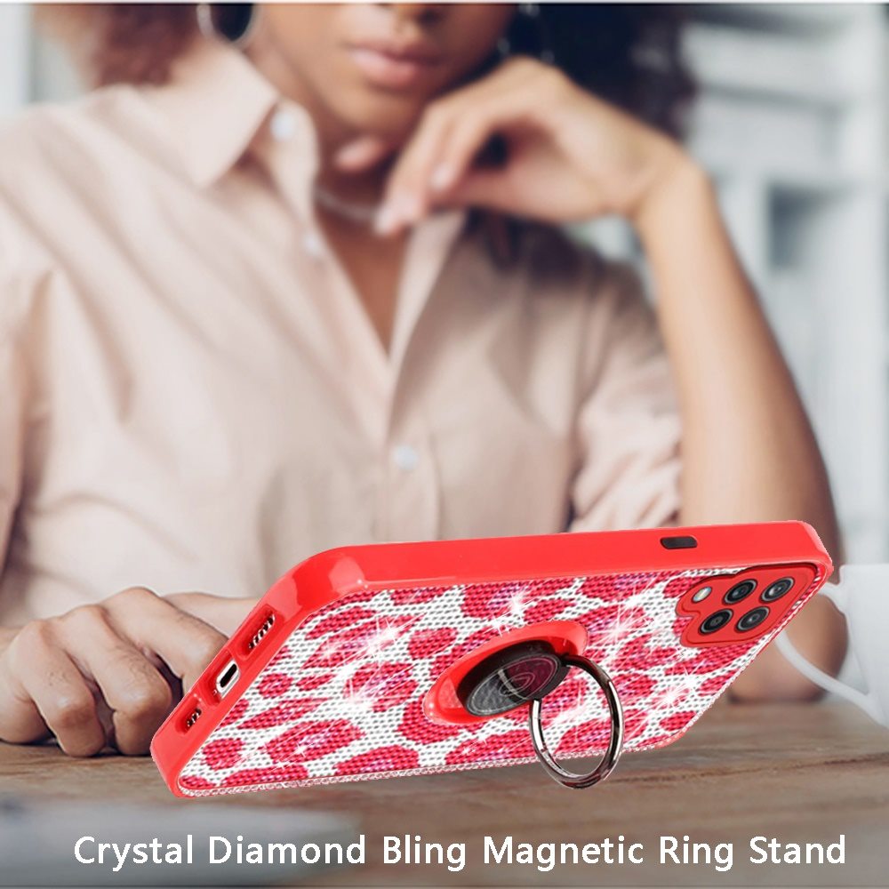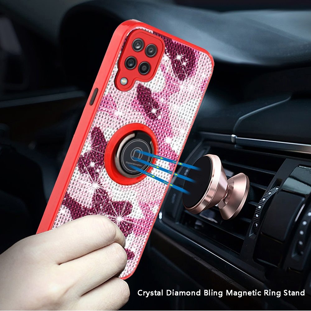 For Samsung Galaxy A12 5G Crystal Diamond Bling Magnetic Ring Stand Case Cover