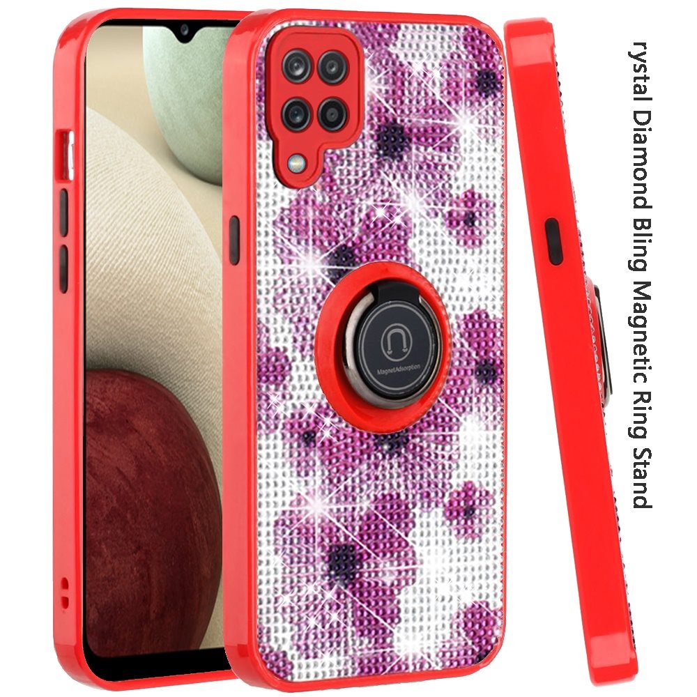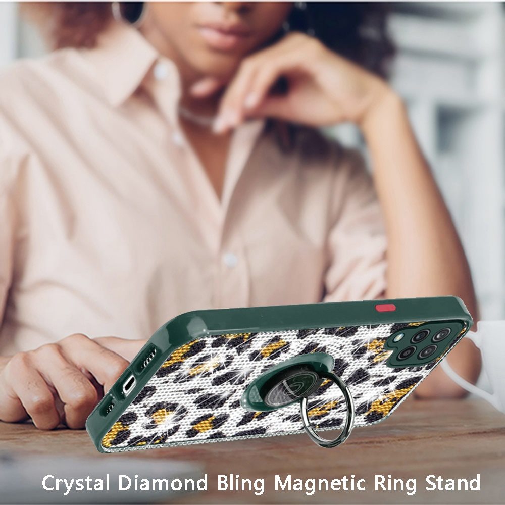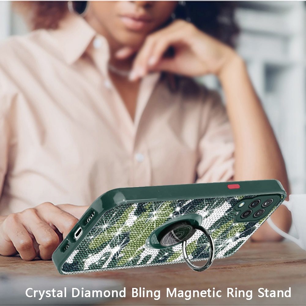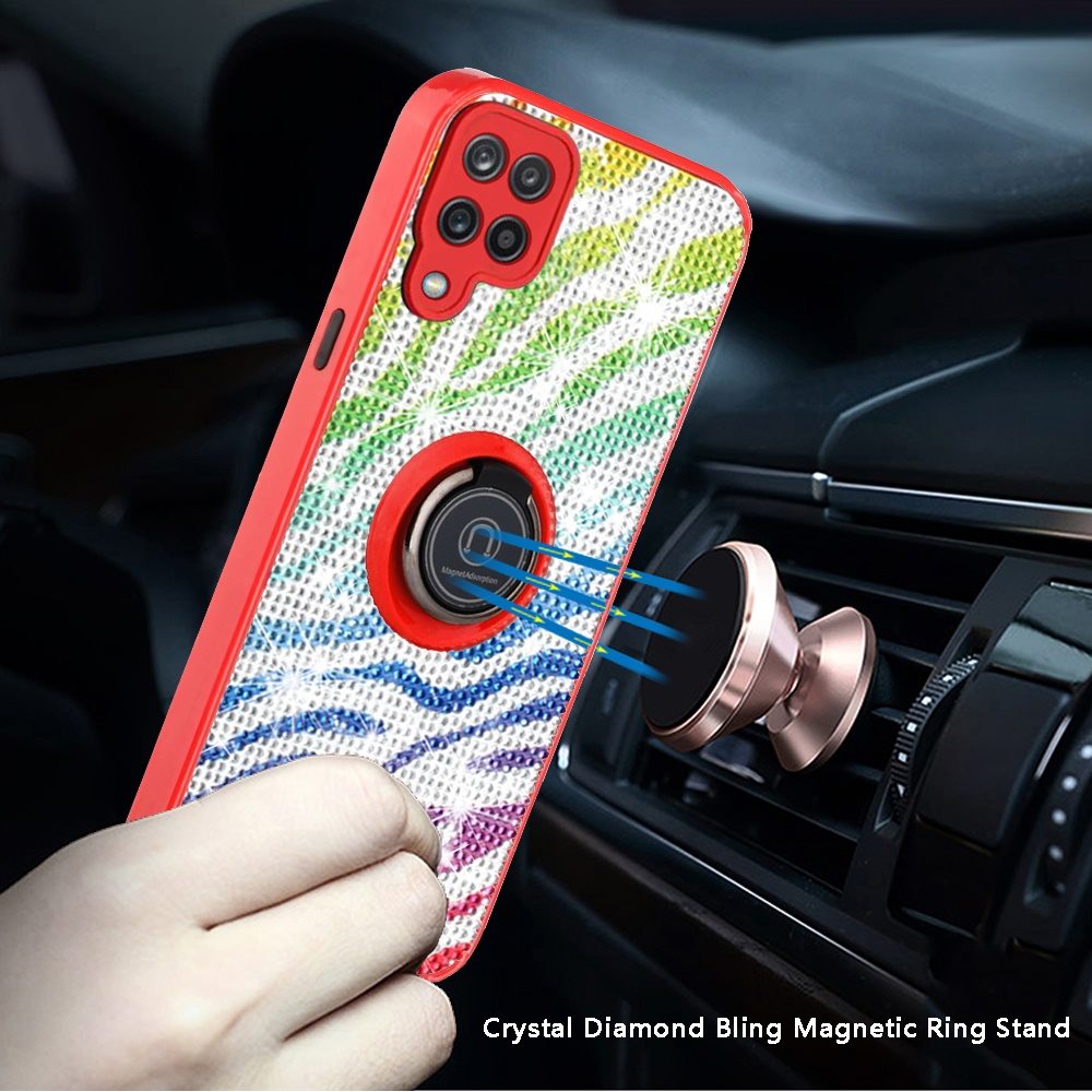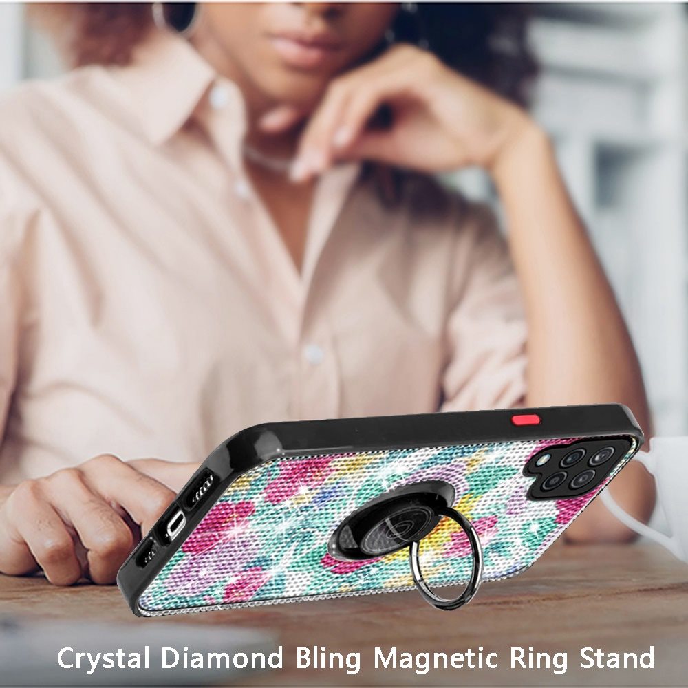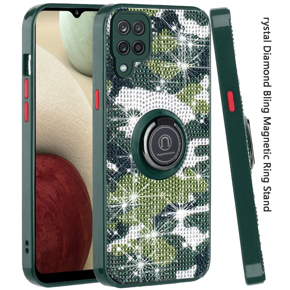 For Samsung Galaxy A12 5G Crystal Diamond Bling Magnetic Ring Stand Case Cover