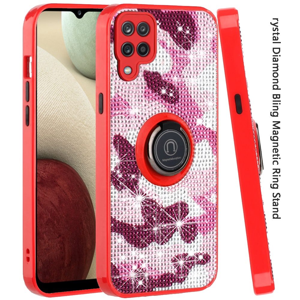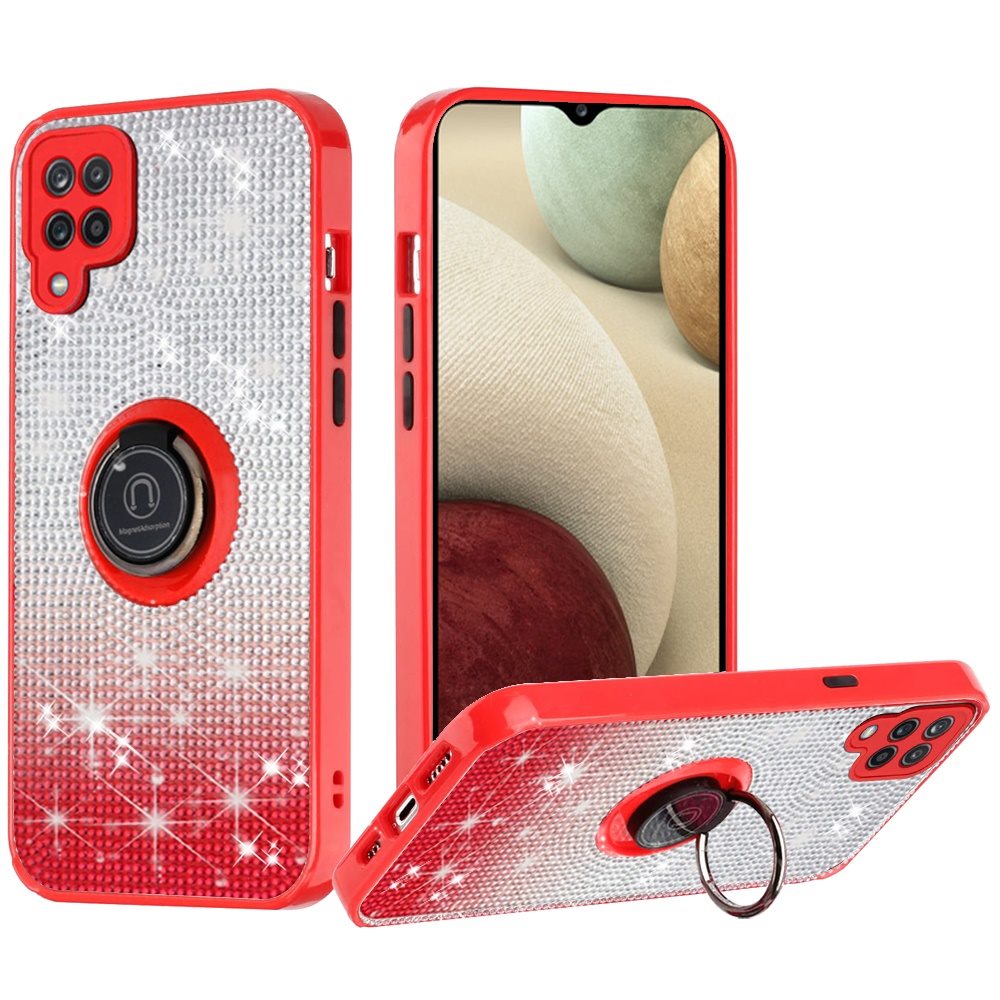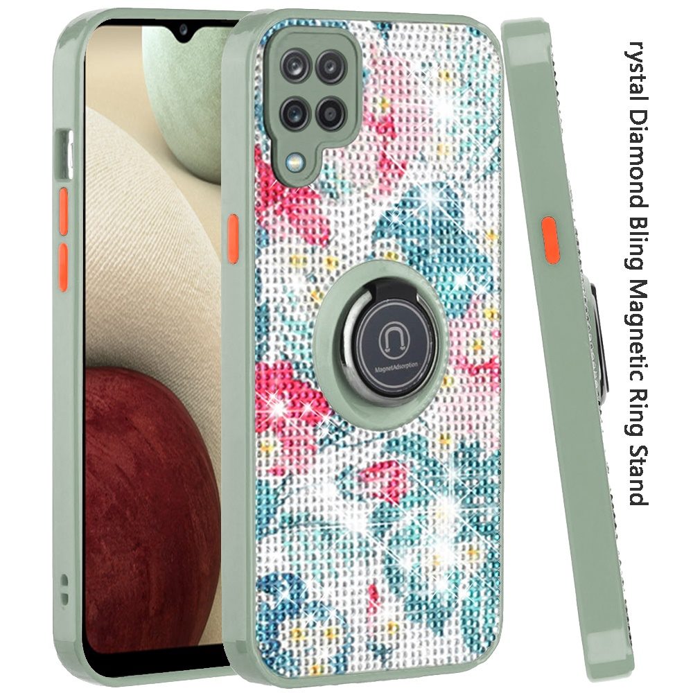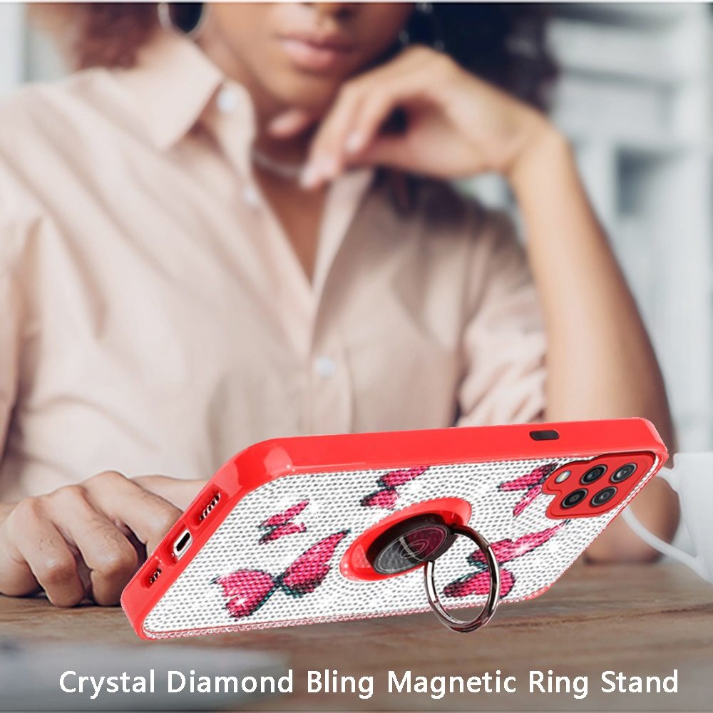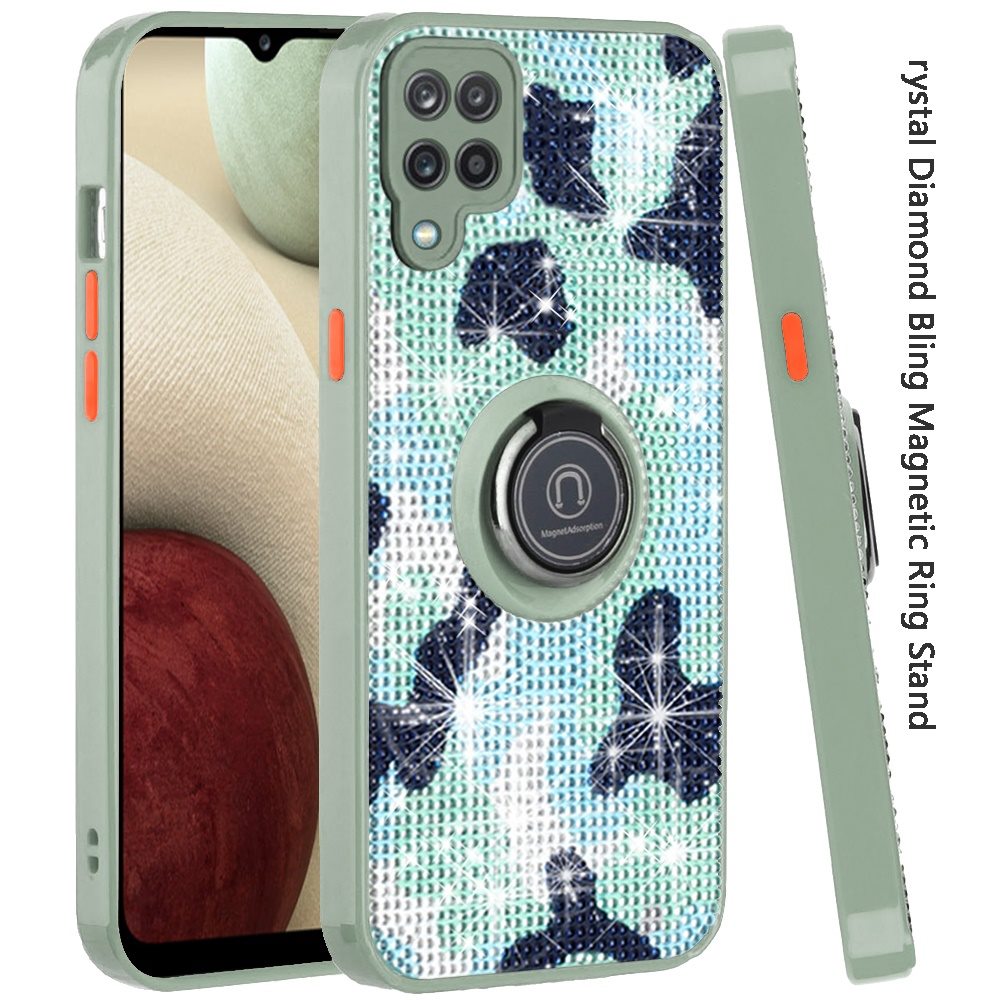 For Samsung Galaxy A12 5G Crystal Diamond Bling Magnetic Ring Stand Case Cover