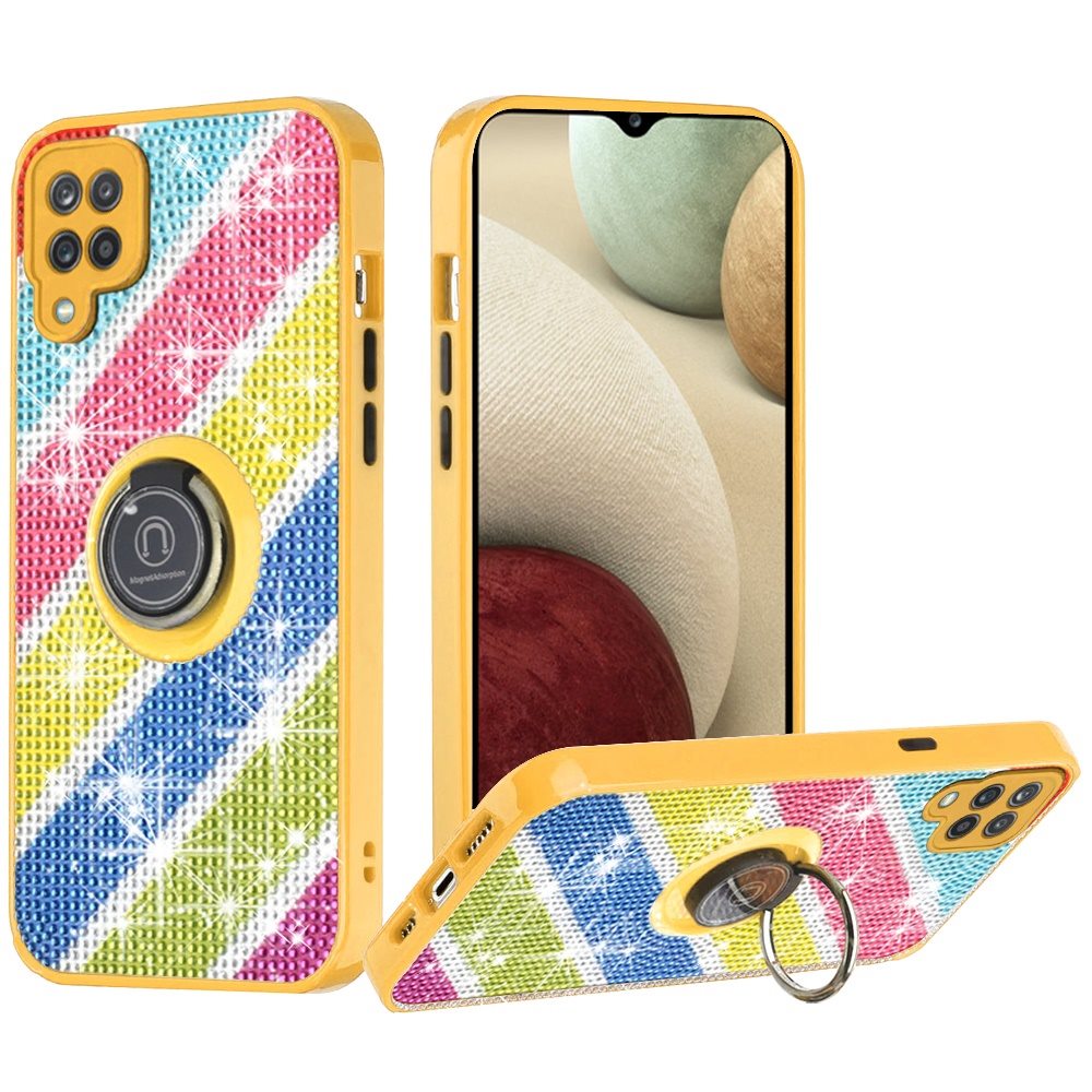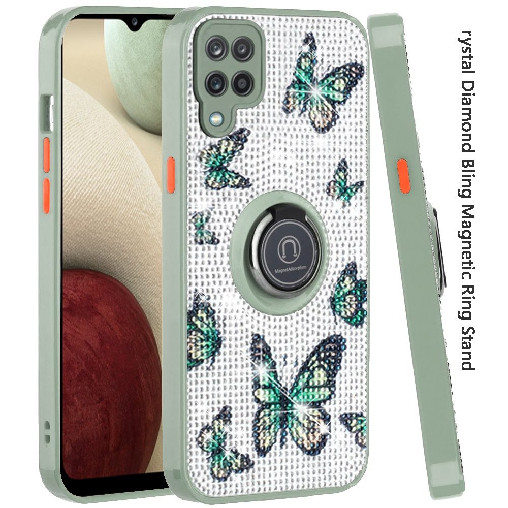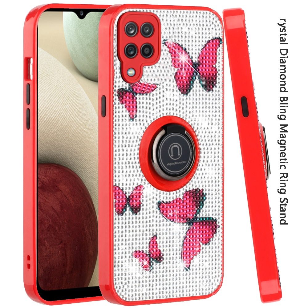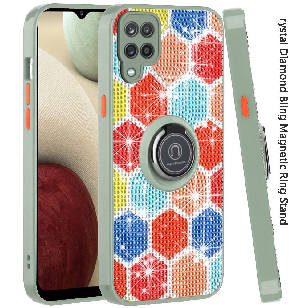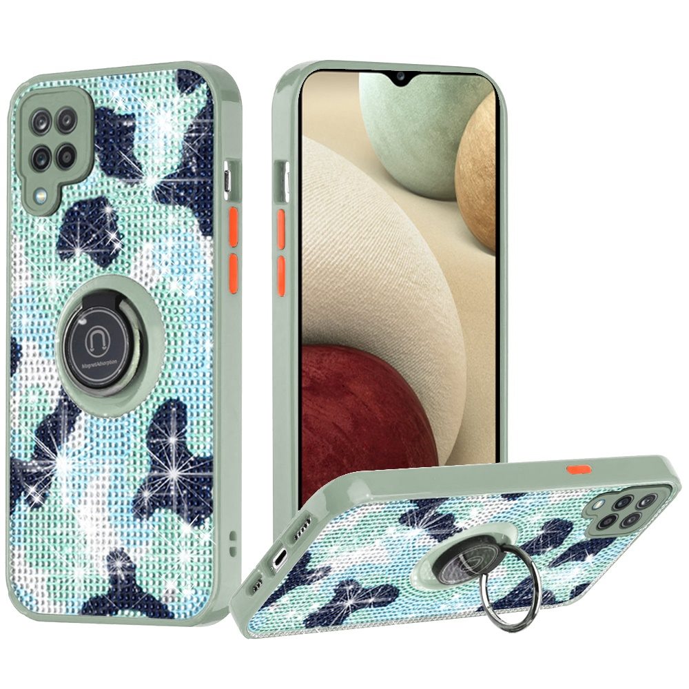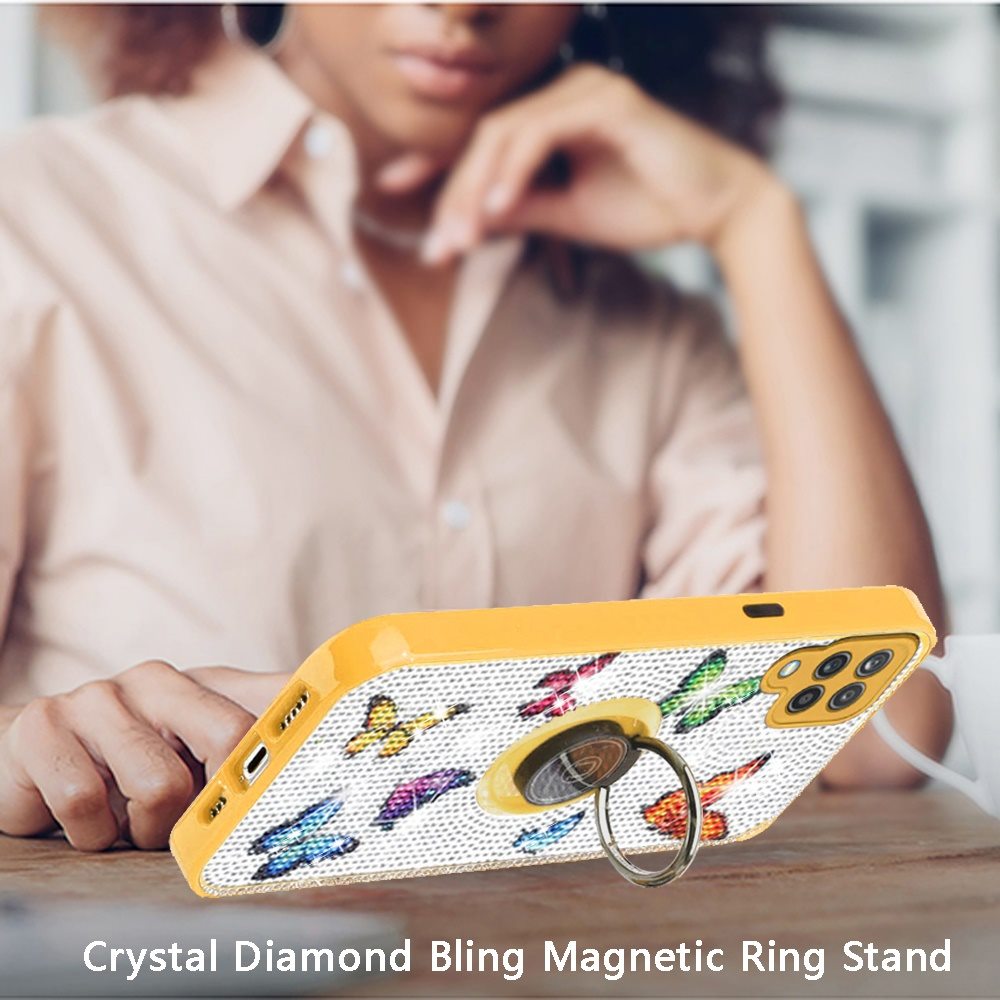 For Samsung Galaxy A12 5G Crystal Diamond Bling Magnetic Ring Stand Case Cover