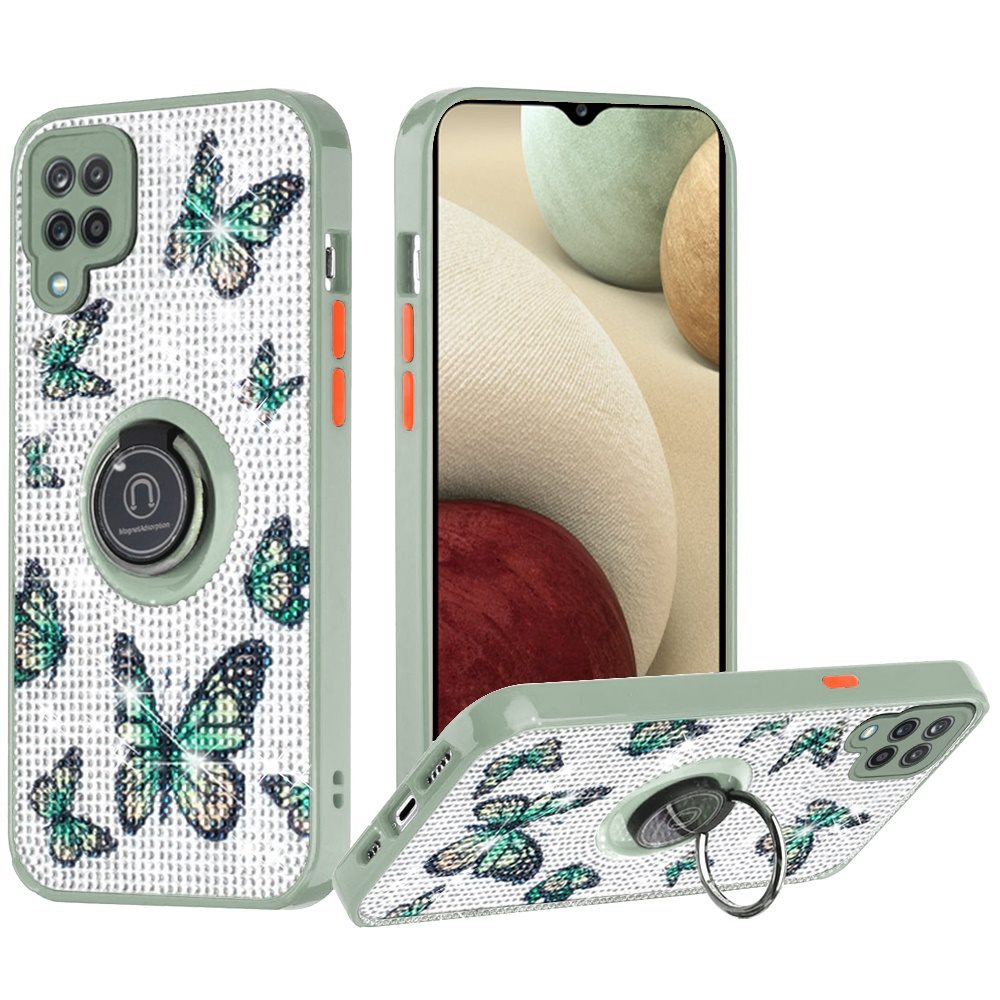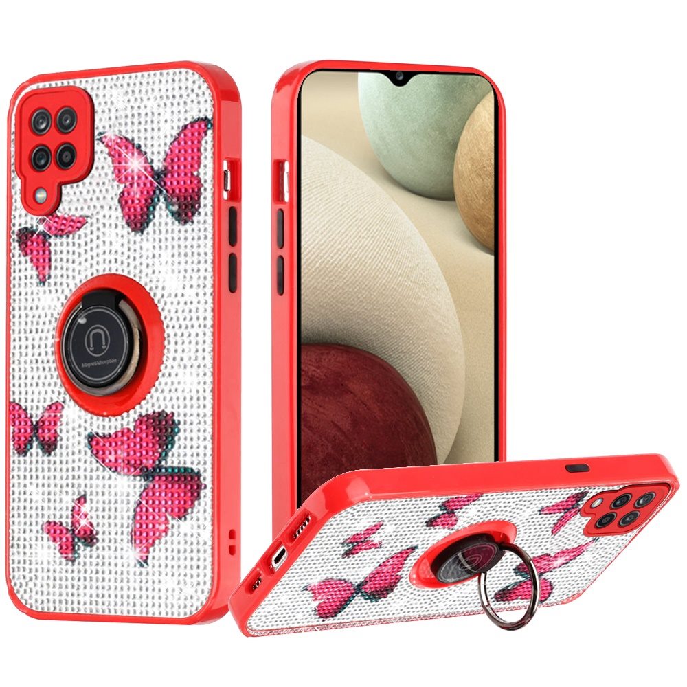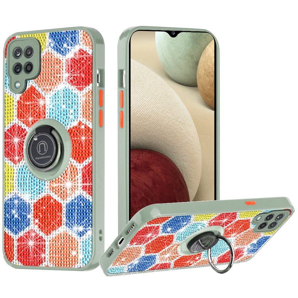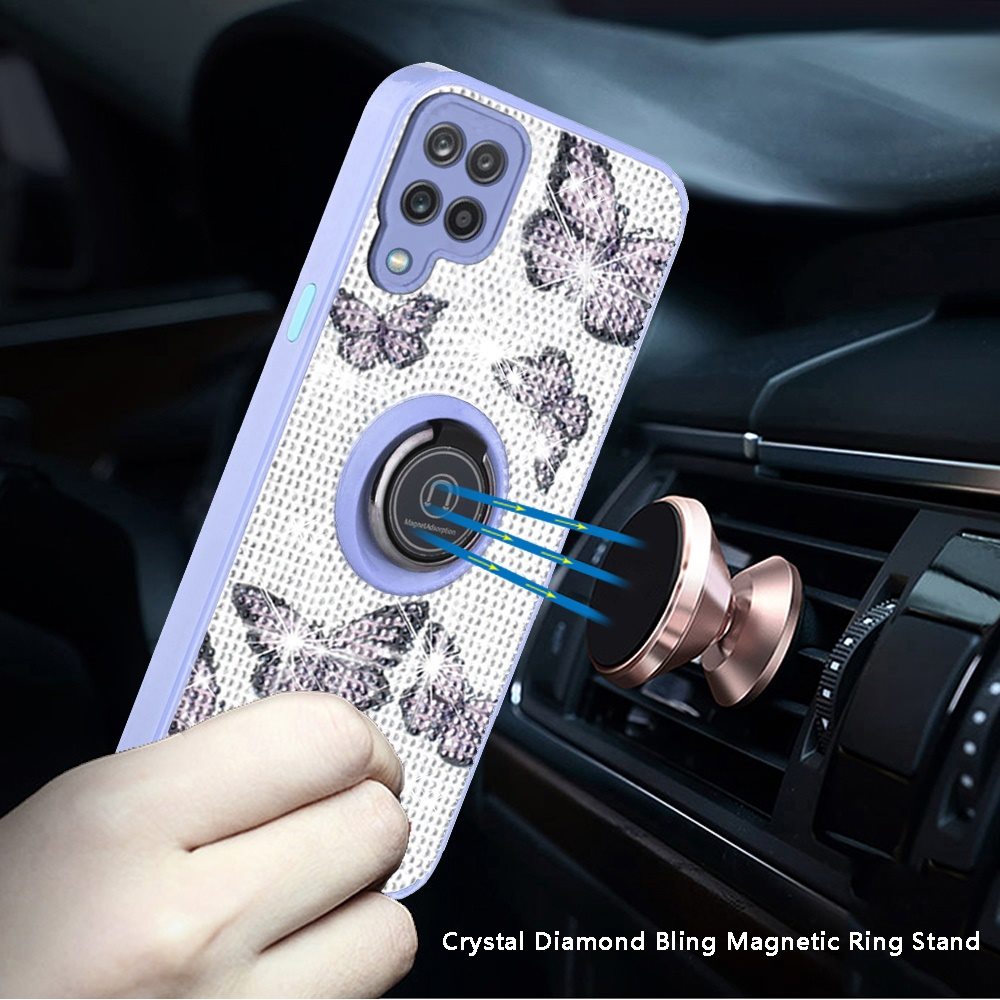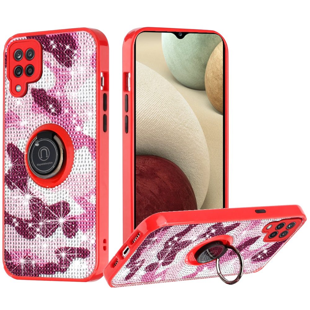 For Samsung Galaxy A12 5G Crystal Diamond Bling Magnetic Ring Stand Case Cover
