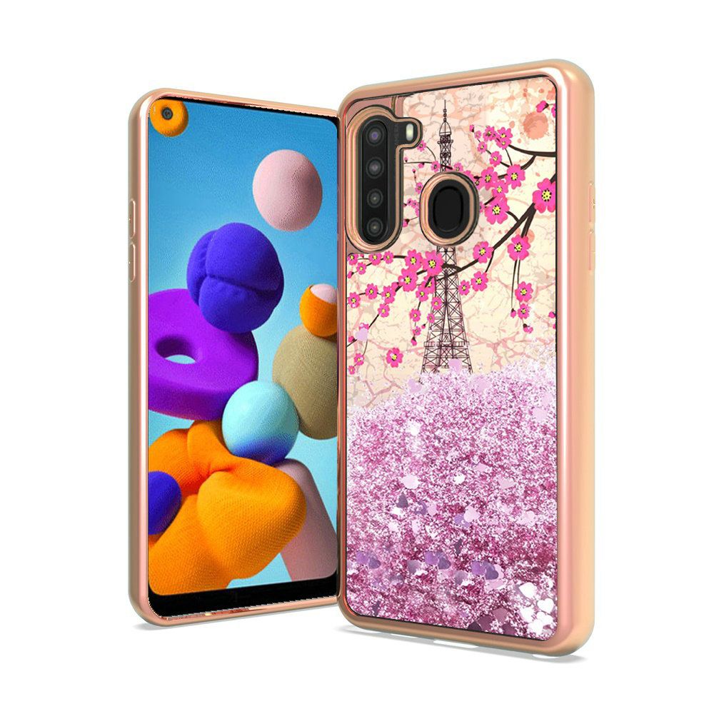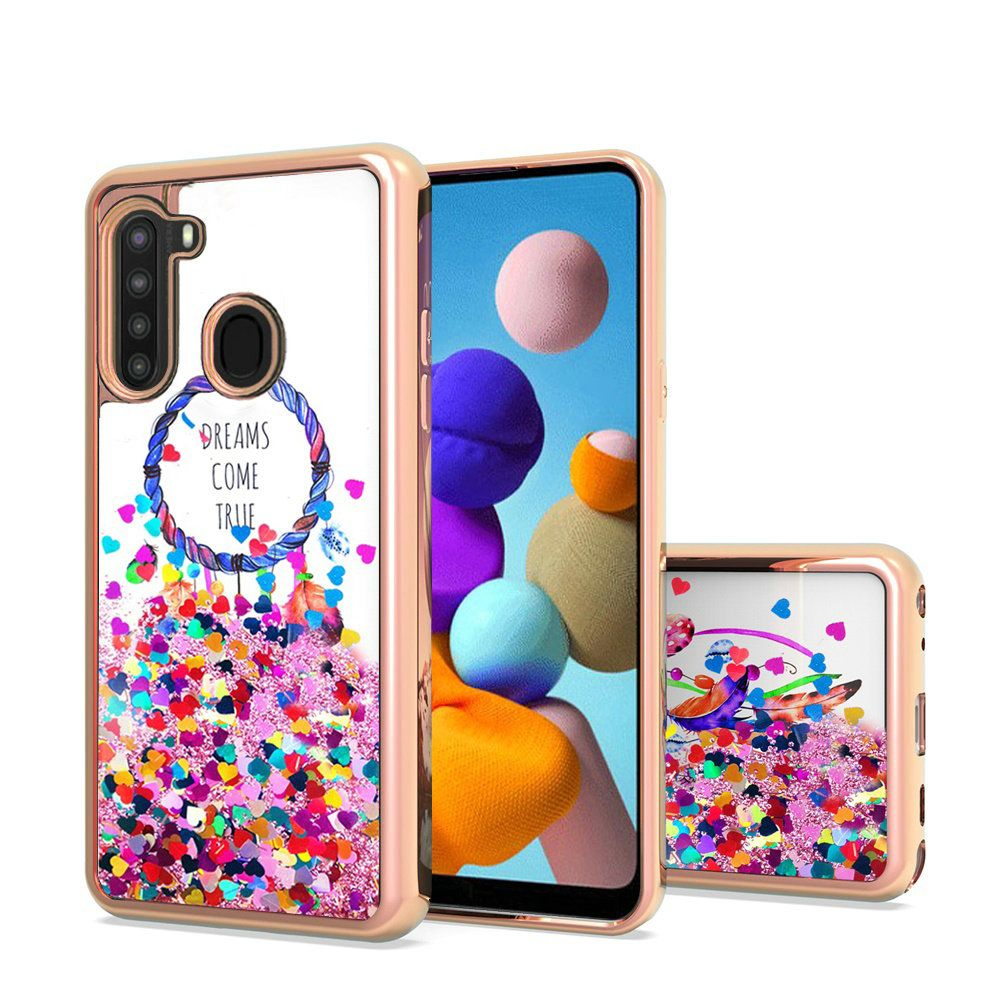 For Samsung Galaxy A21 Design Water Quicksand Glitter Case Cover