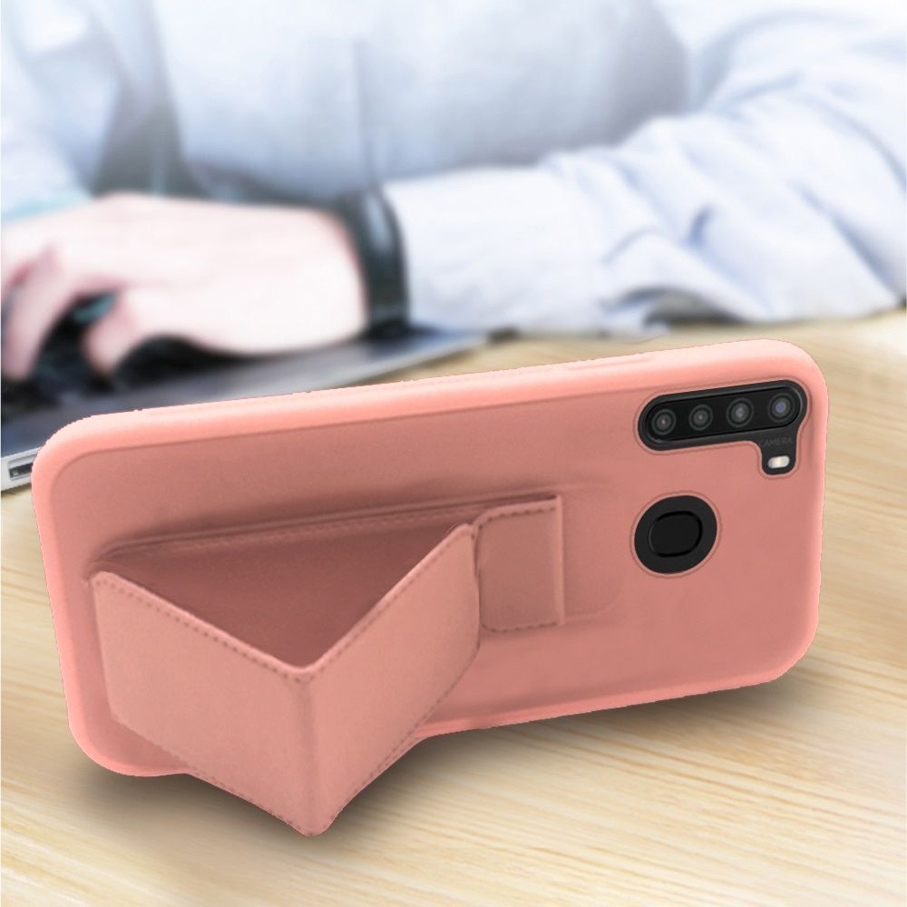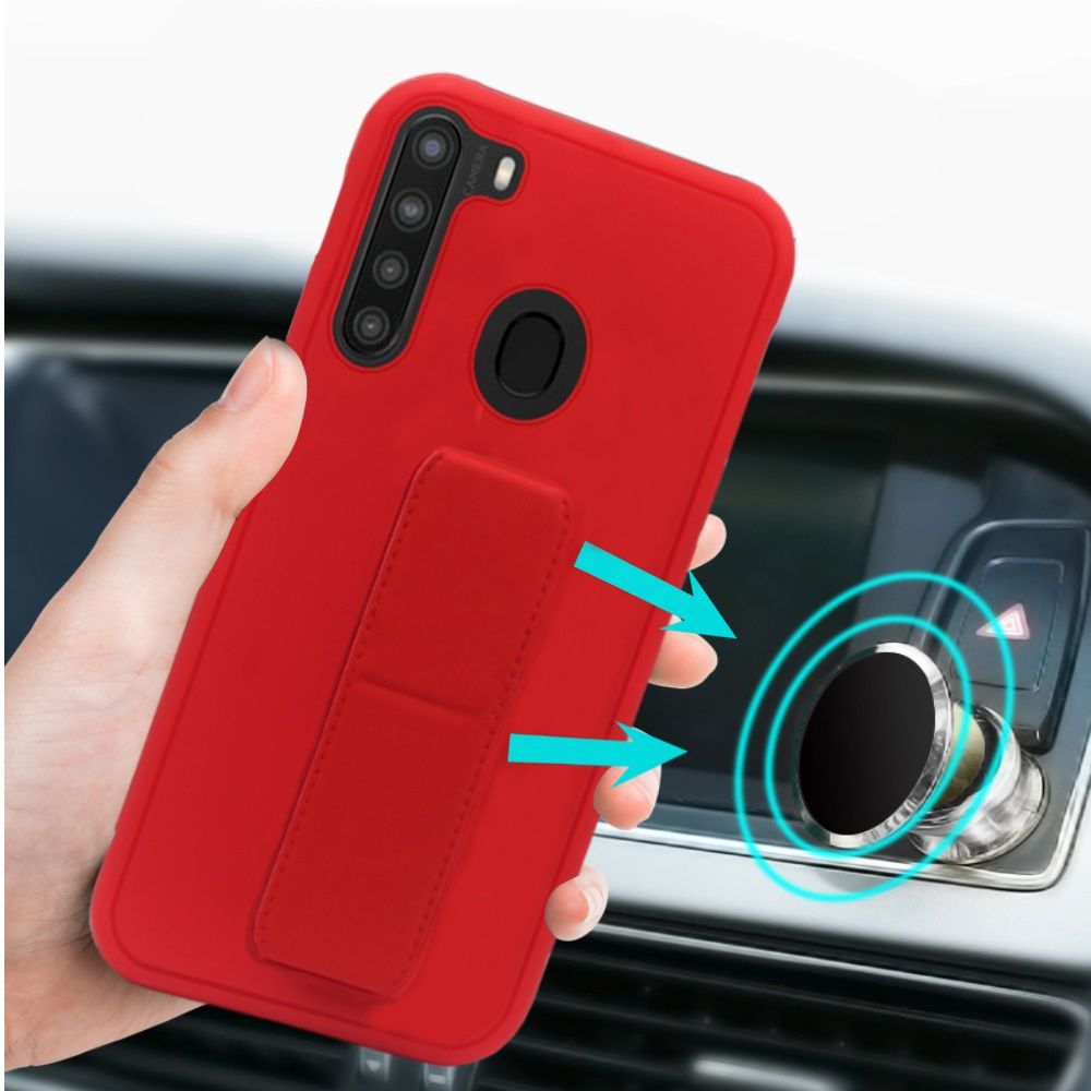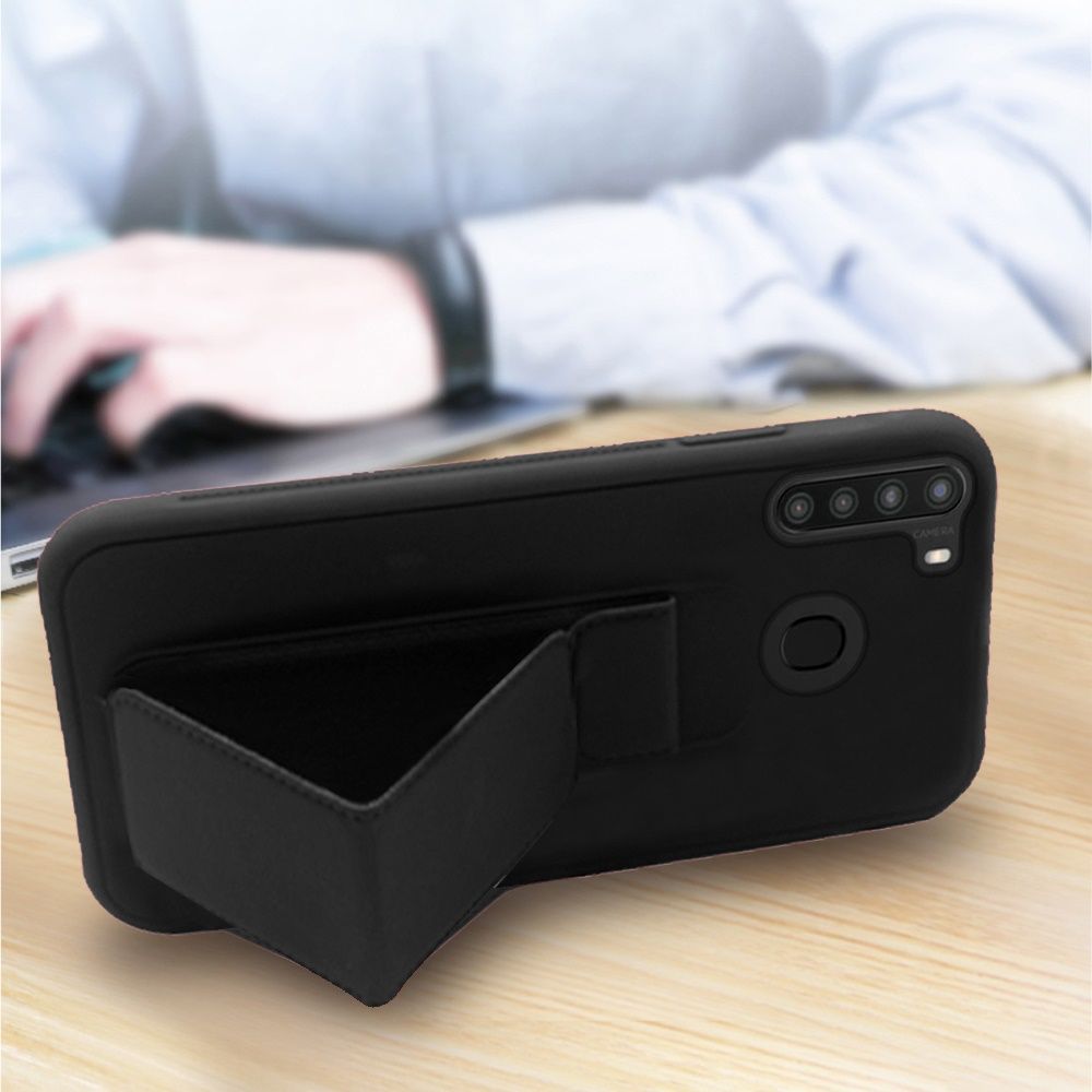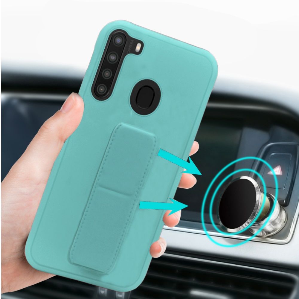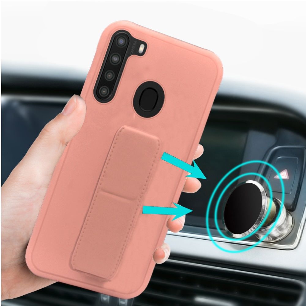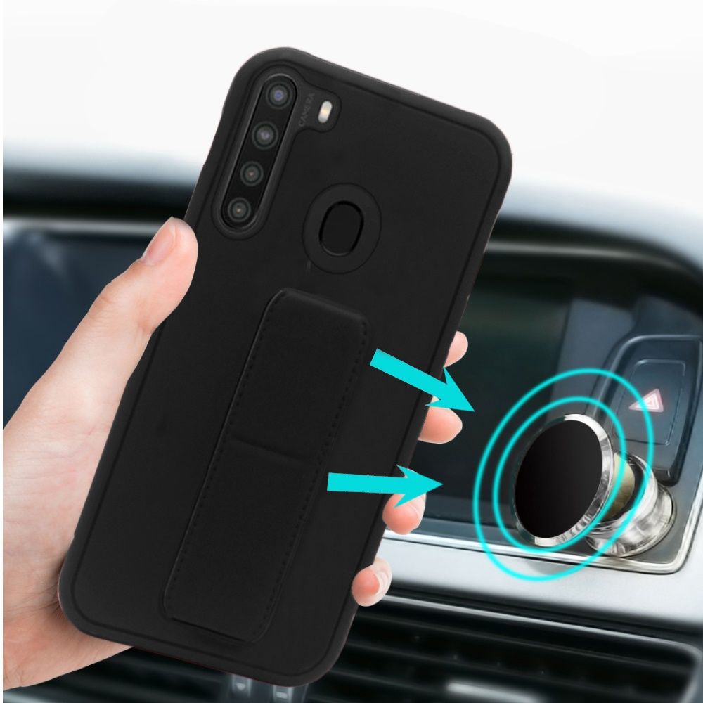 For Samsung Galaxy A21 Foldable Magnetic Kickstand Vegan Case Cover