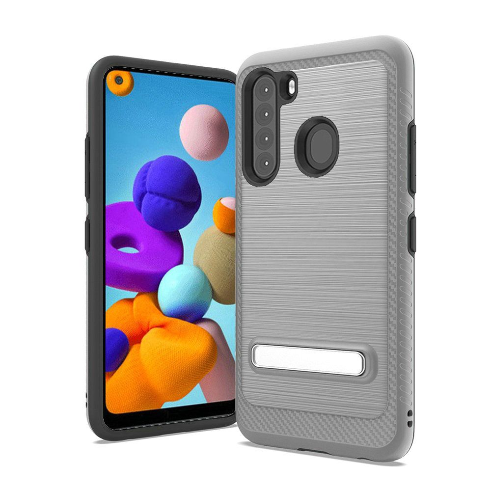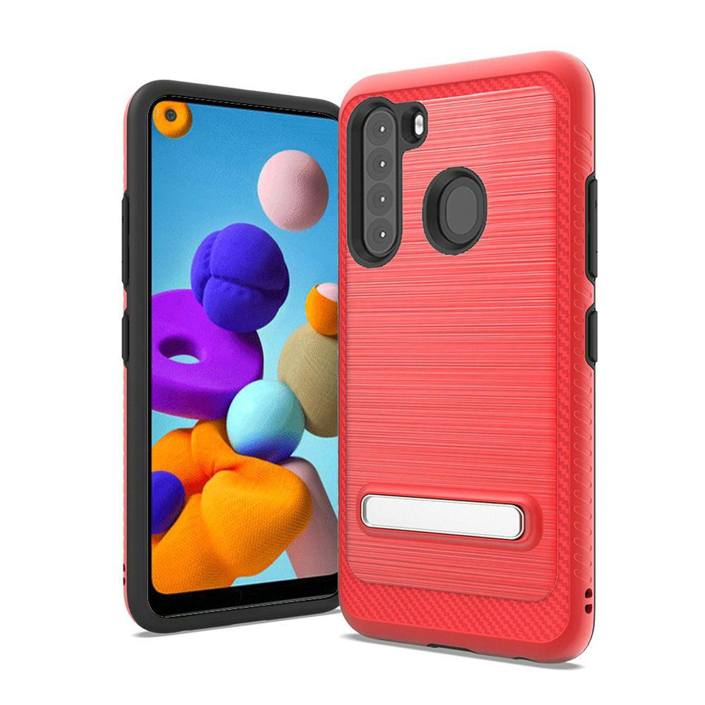 For Samsung Galaxy A21 Slick Magnetic Kickstand Hybrid Case Cover