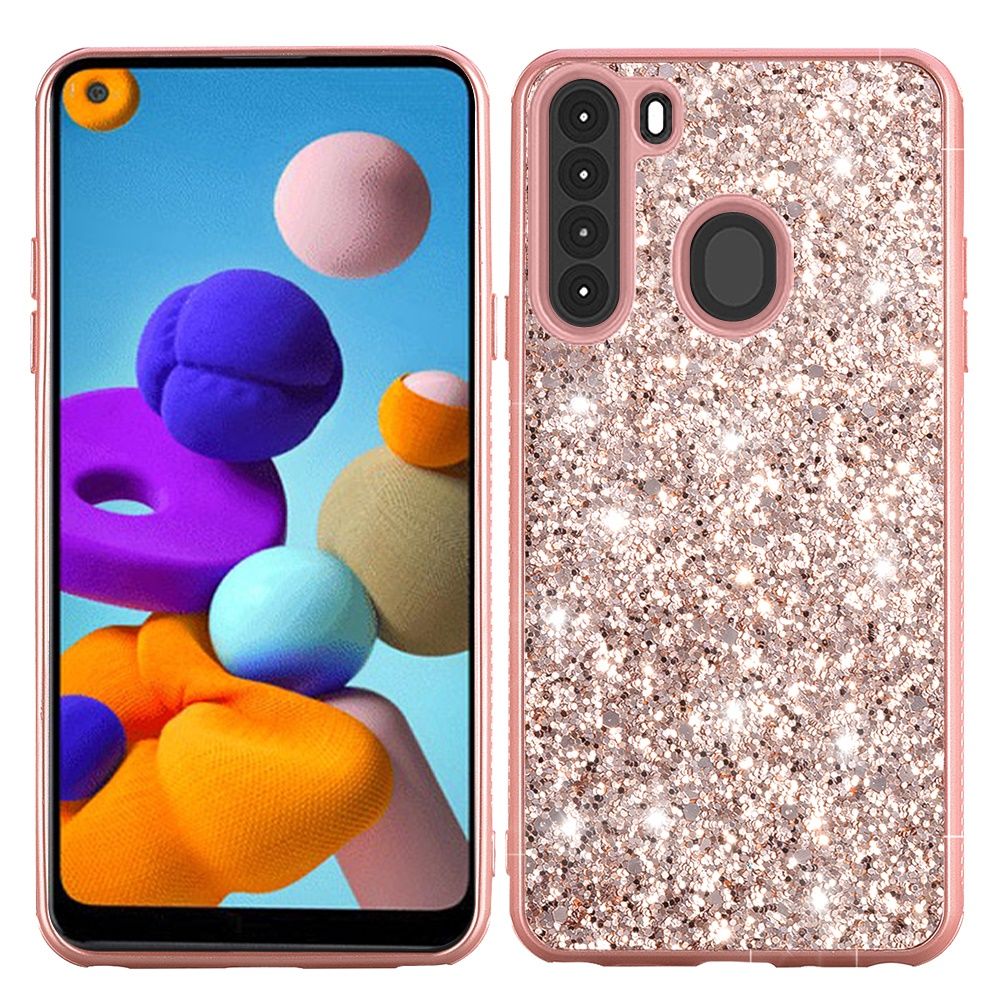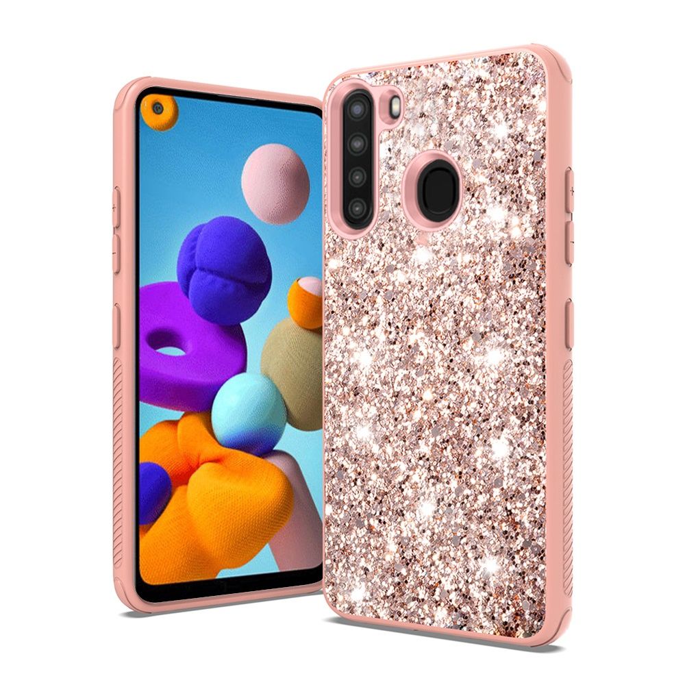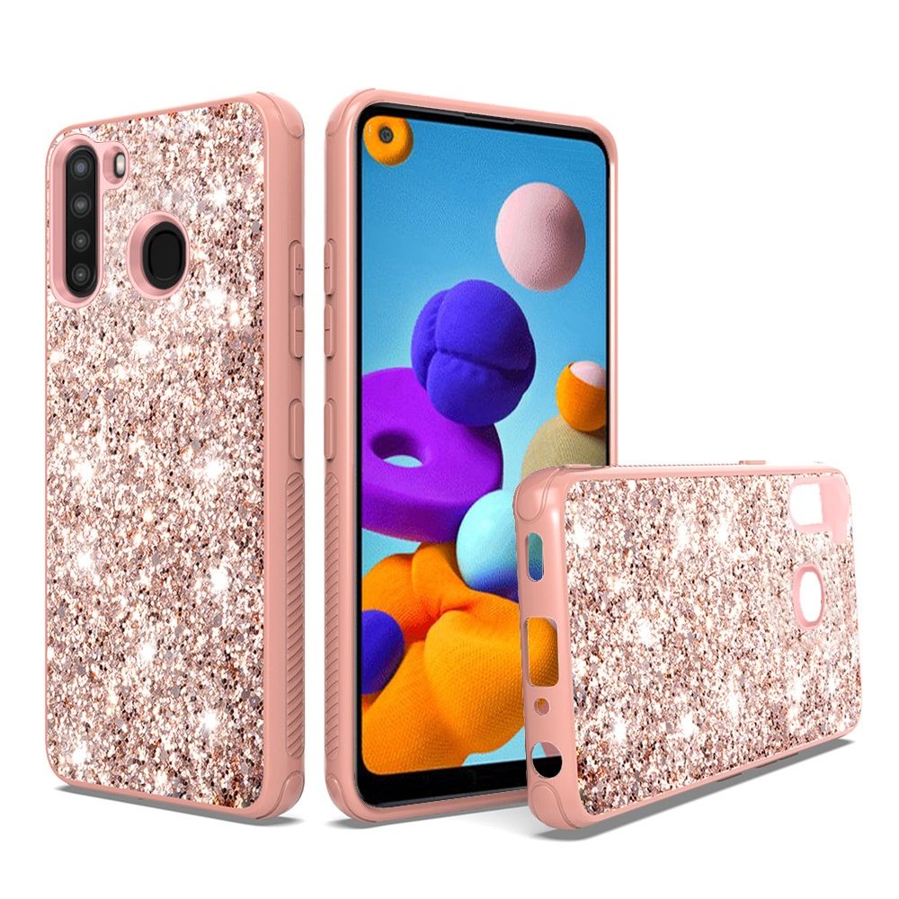 For Samsung Galaxy A21 Sparkle Glitter Bling Shinny Hybird Case Cover