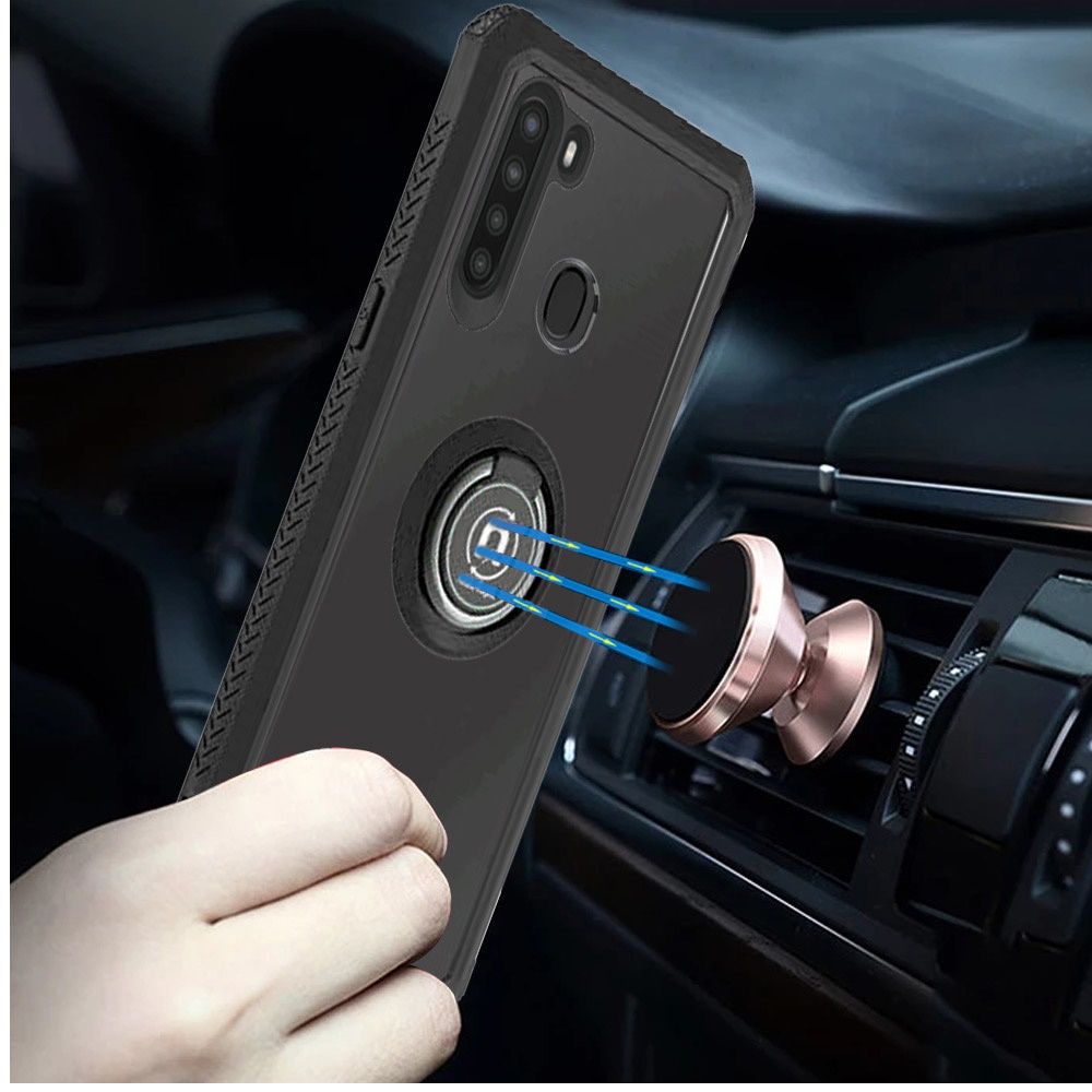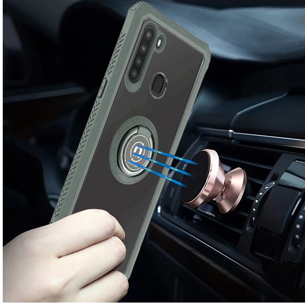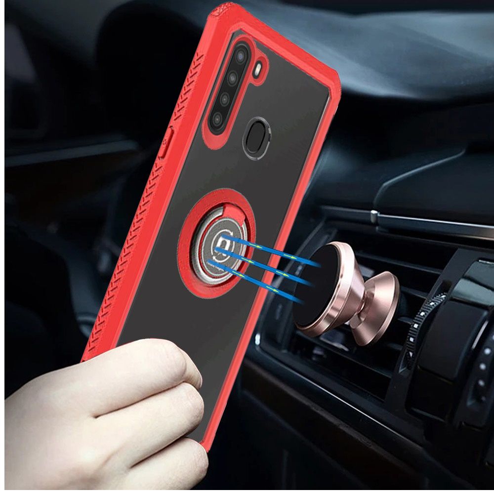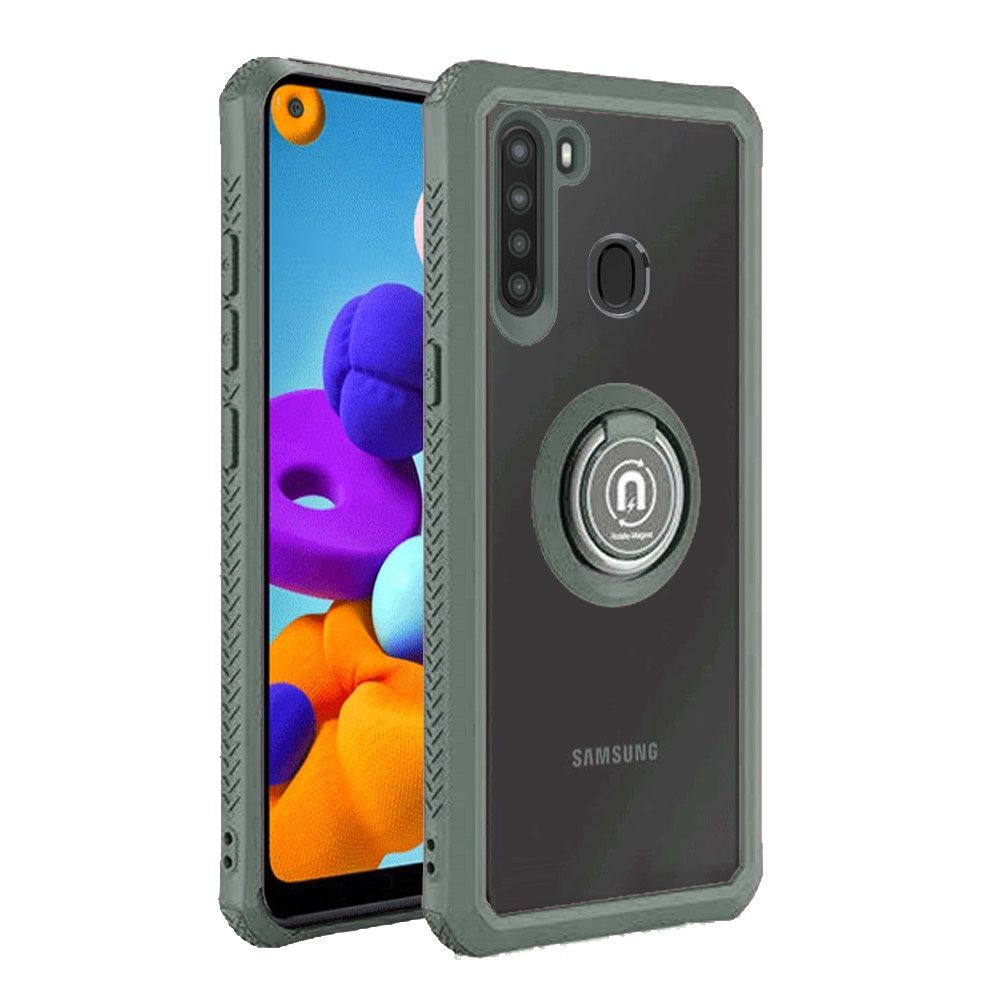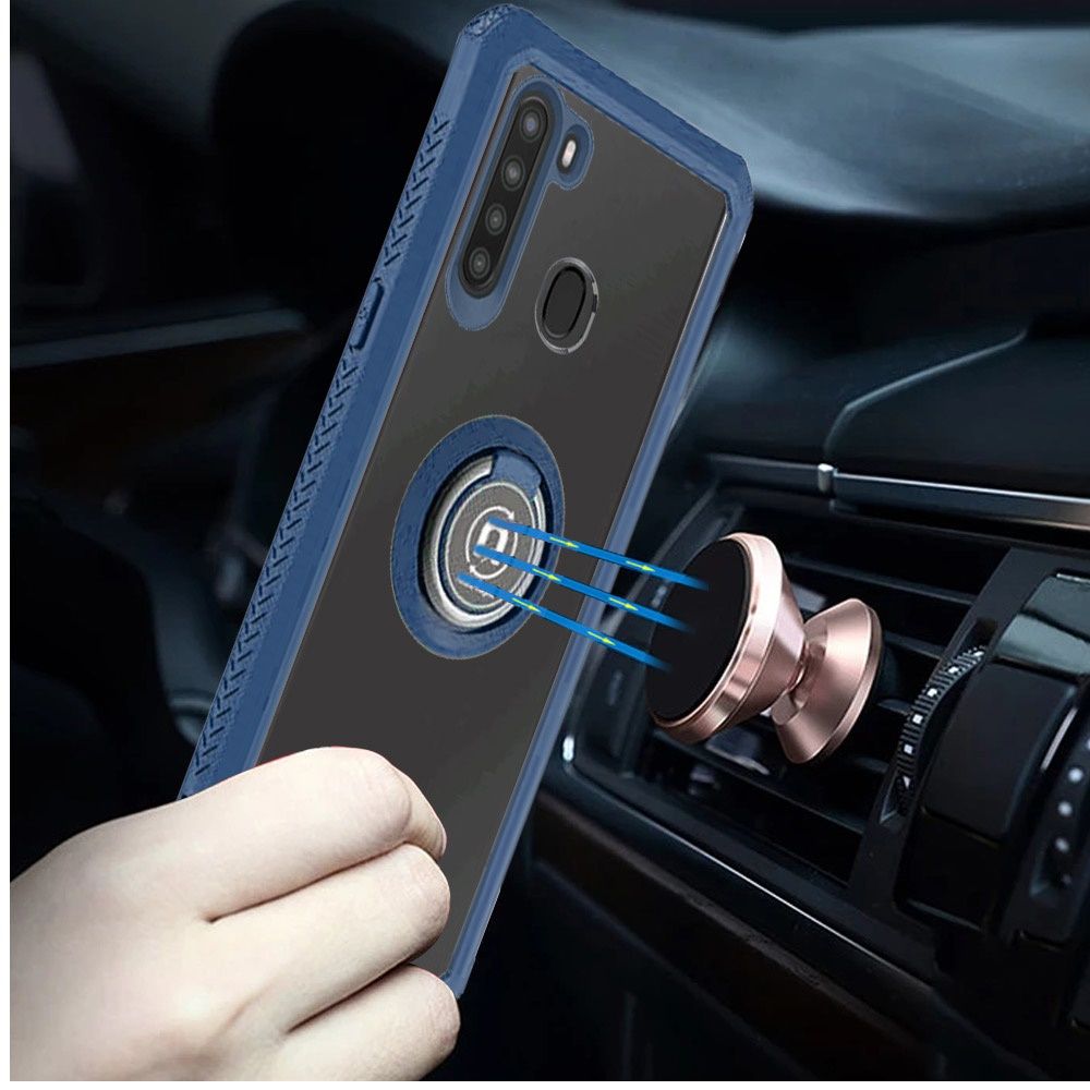 For Samsung Galaxy A21 Transparent Magnetic RingStand Case Cover