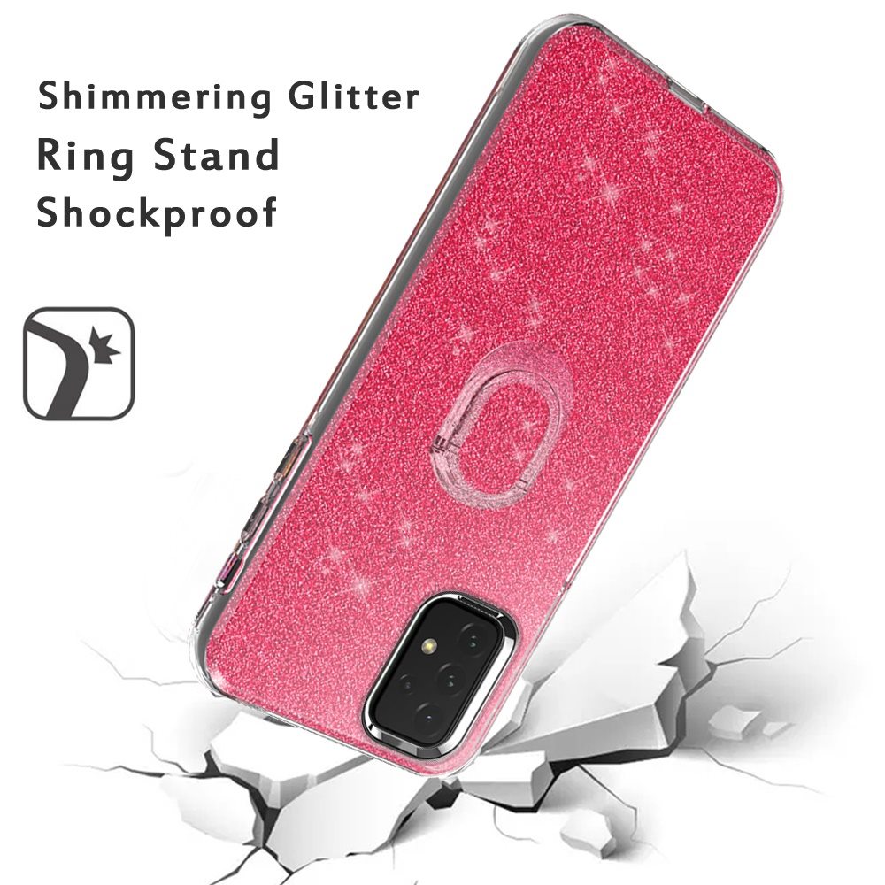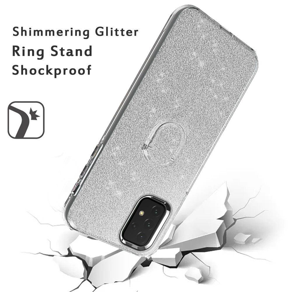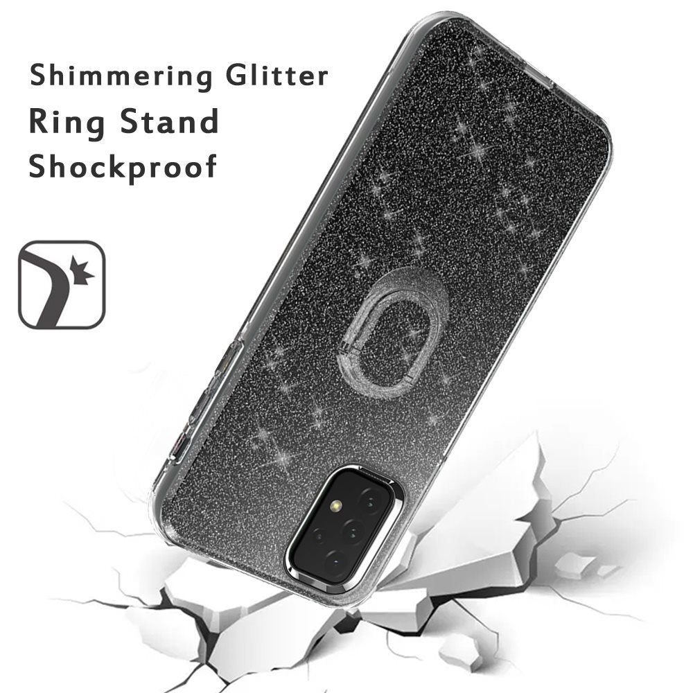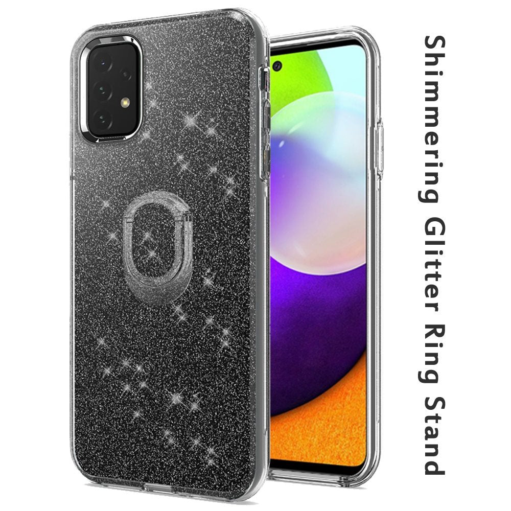 For Samsung Galaxy A52 5G Shimmering Glitter Ring Stand Case Cover