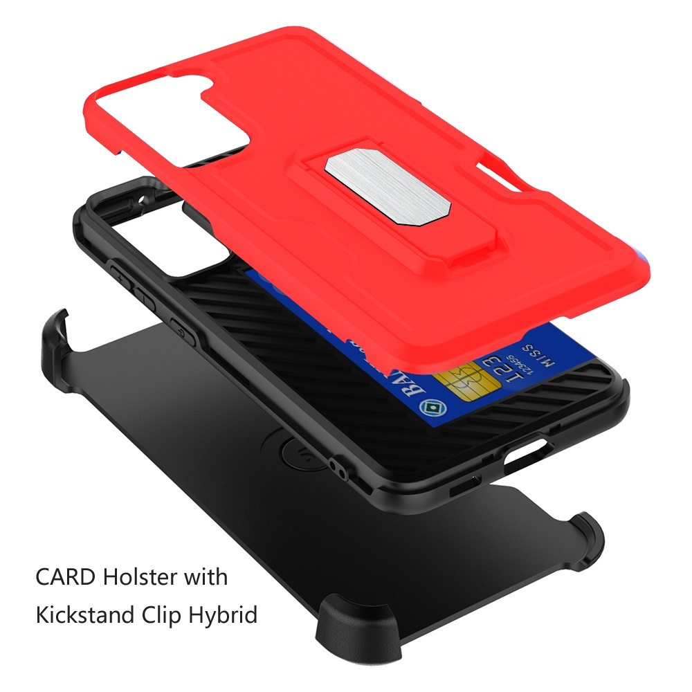 For Samsung Galaxy S21 FE CARD Holster with Kickstand Clip Hybrid Case Cover