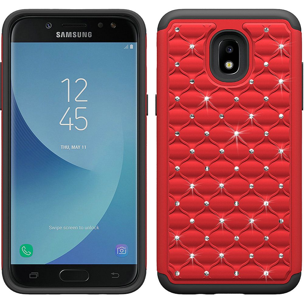 For Samsung J7 Star/Refine Studded Rhinestone Crystal Bling Diamond Tough Hybrid