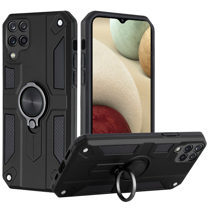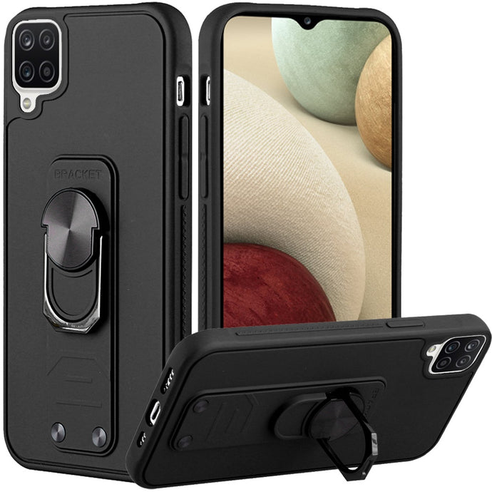 For Samsung A12 Solid Lever Magnetic Ring Stand Tough Hybrid Case Cover