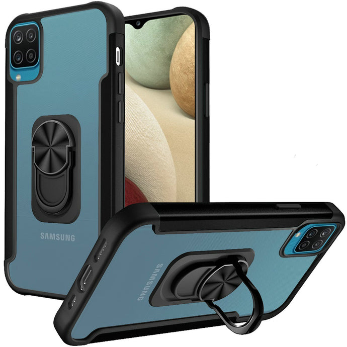 For Samsung A12 Aluminium Alloy Magnetic Ring Stand Hybrid Case Cover
