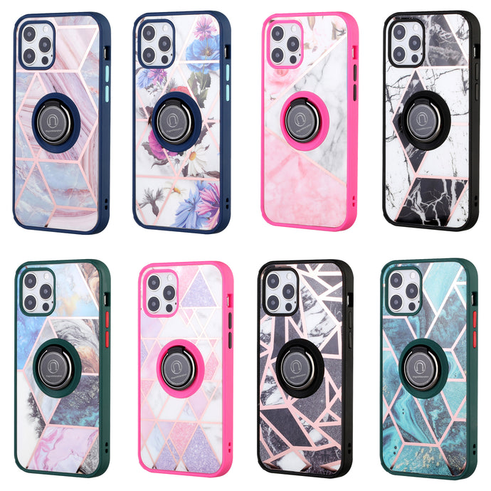 For Samsung A12 Unique IMD Design Magnetic Ring Stand Cover Case