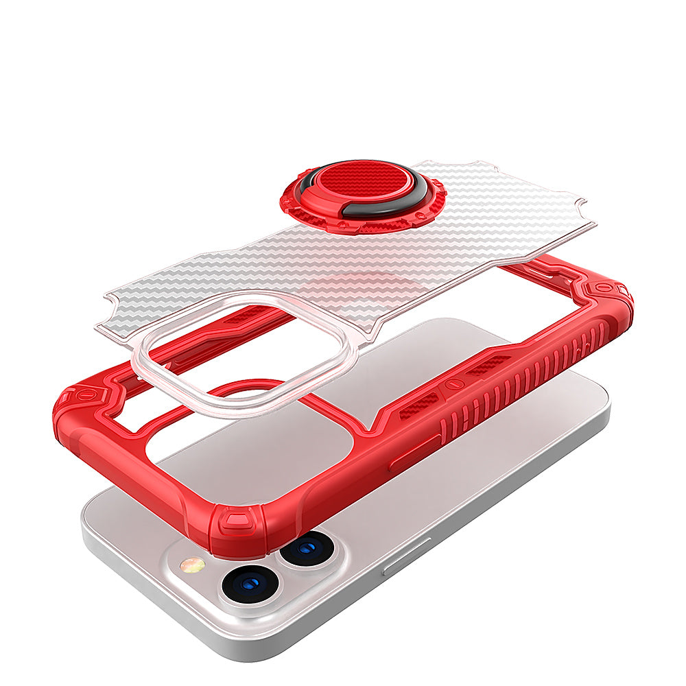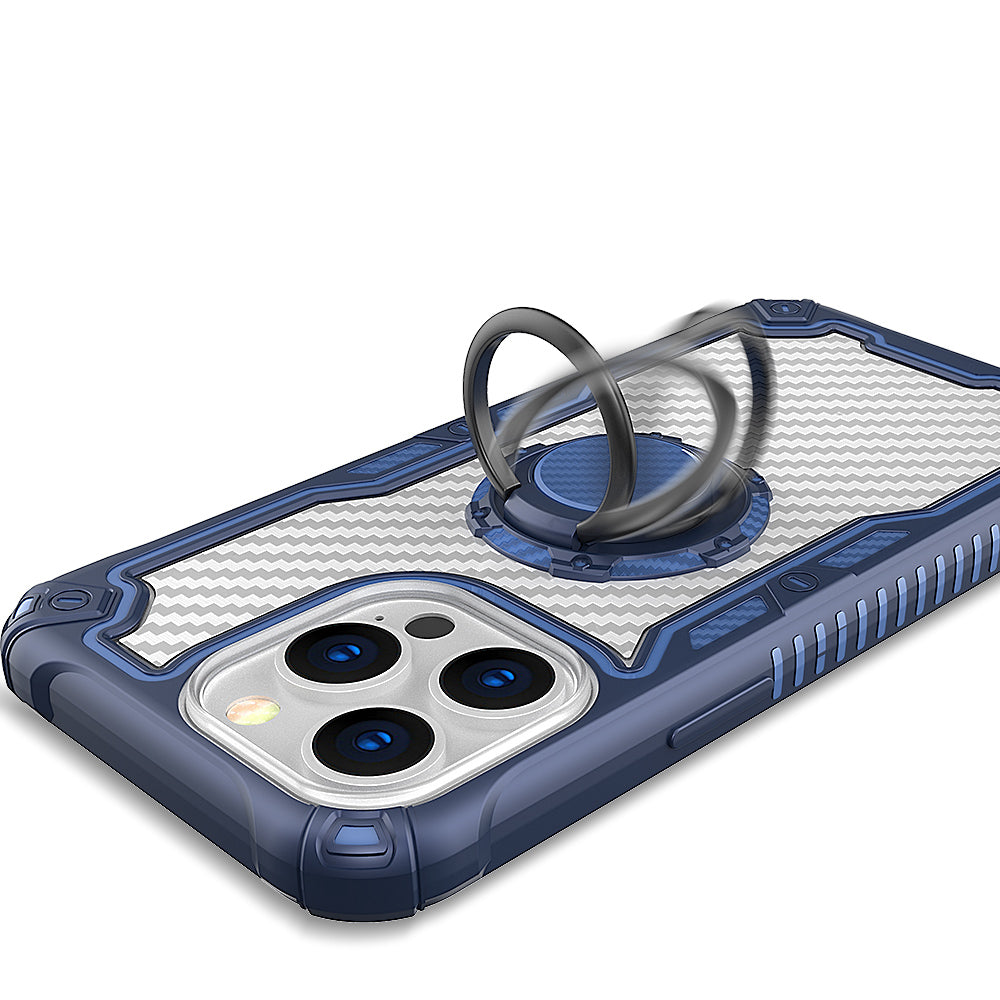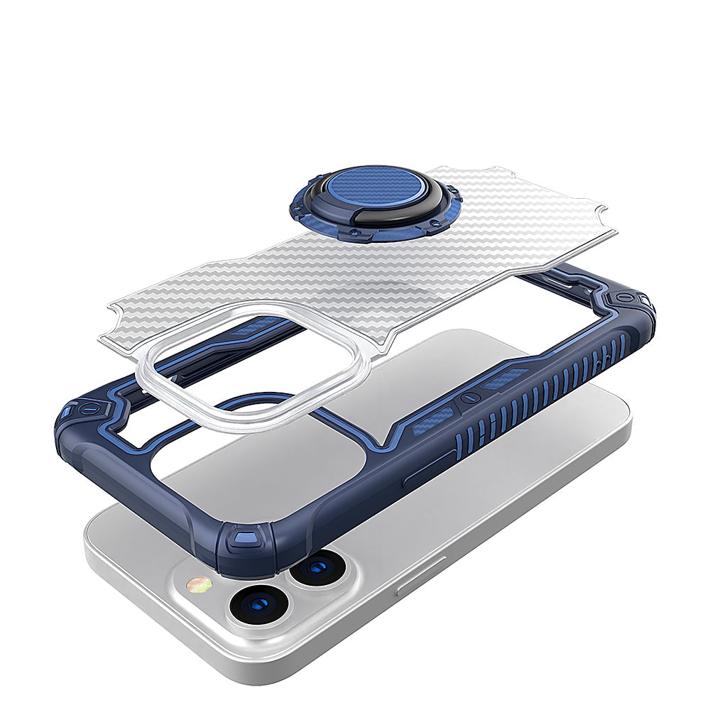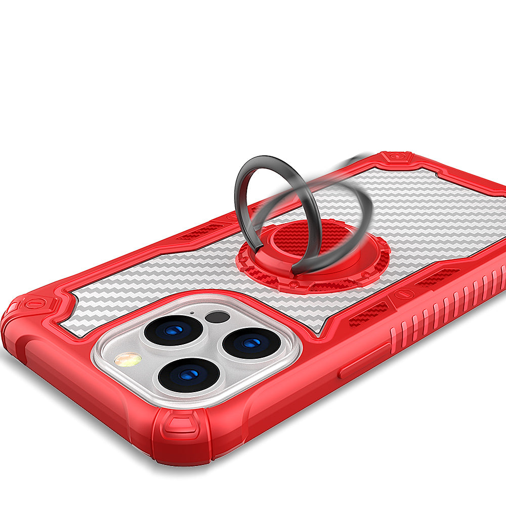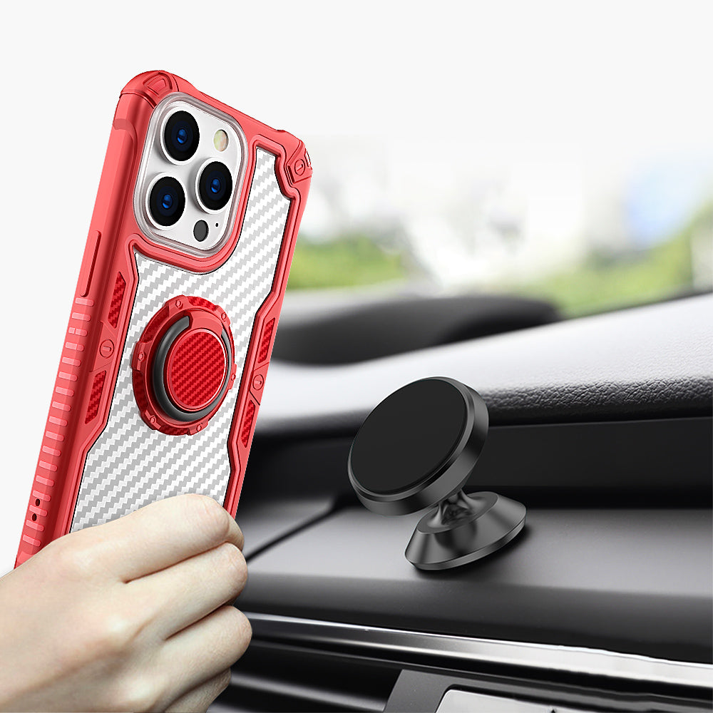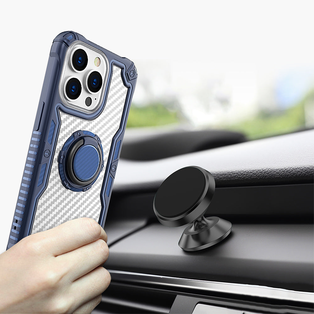 Carbon Fiber Print Shockprof Magnetic Ring Stand Hybrid