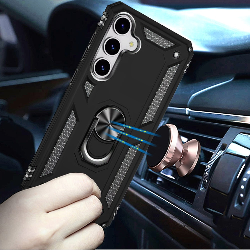 Ring Dual Layer Fused Hybrid Phone Case Cover + Tempered Glass Screen Protector